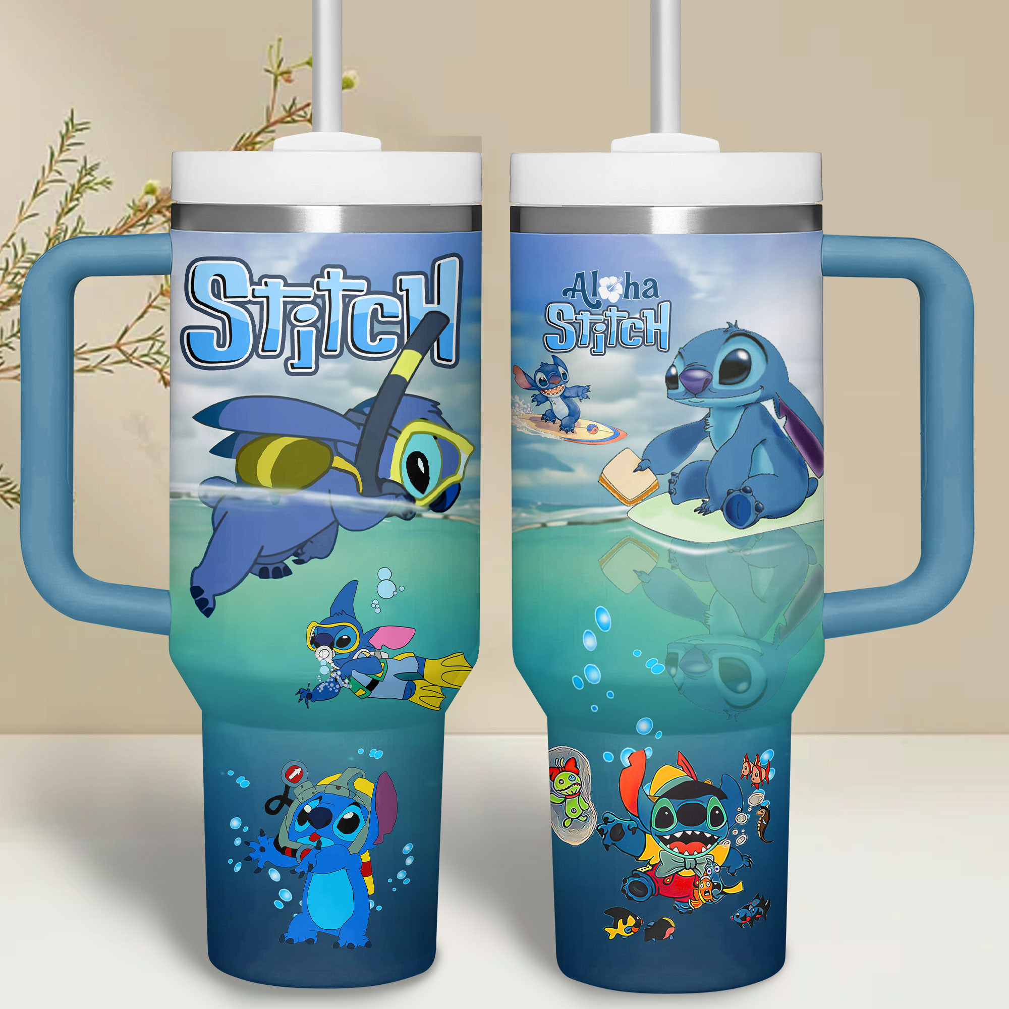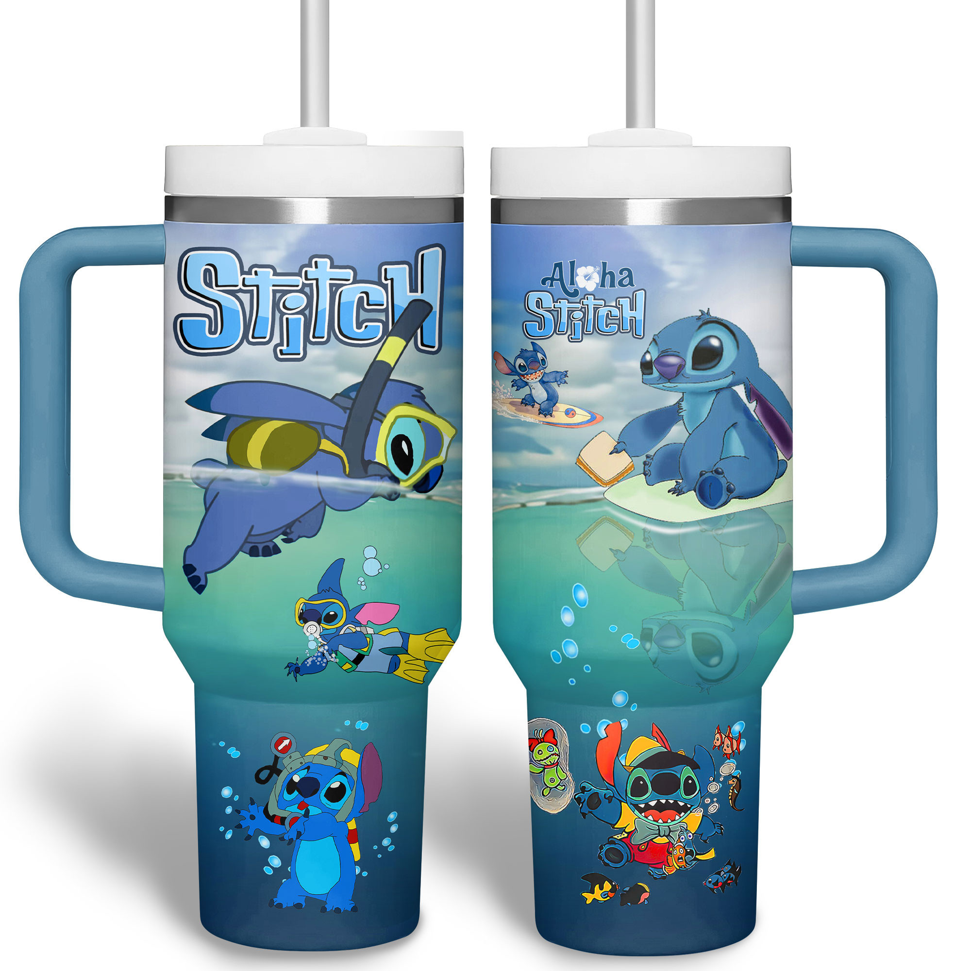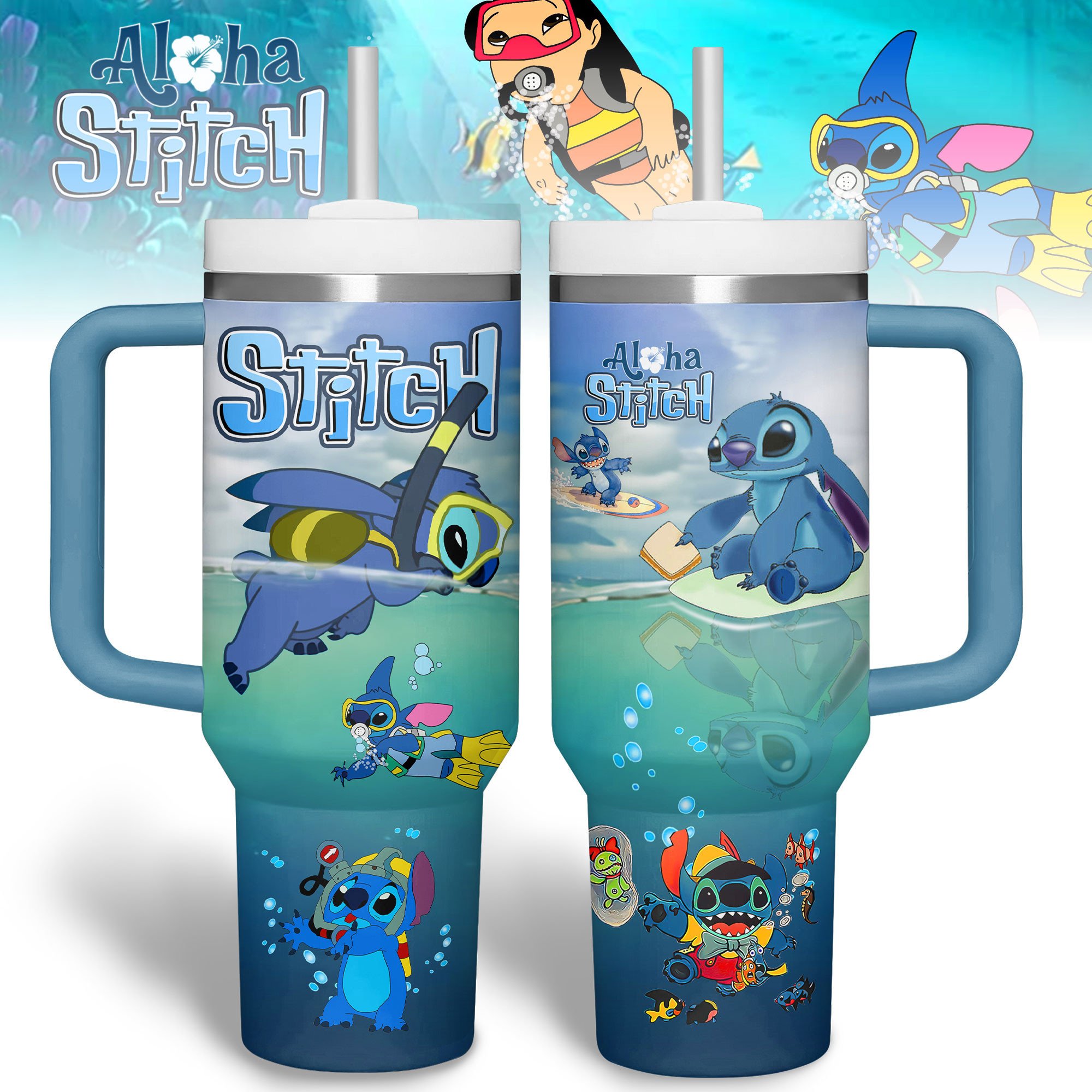 Aloha Stitch Tumbler with Handle – Insulated Travel Mug for Disney Fans