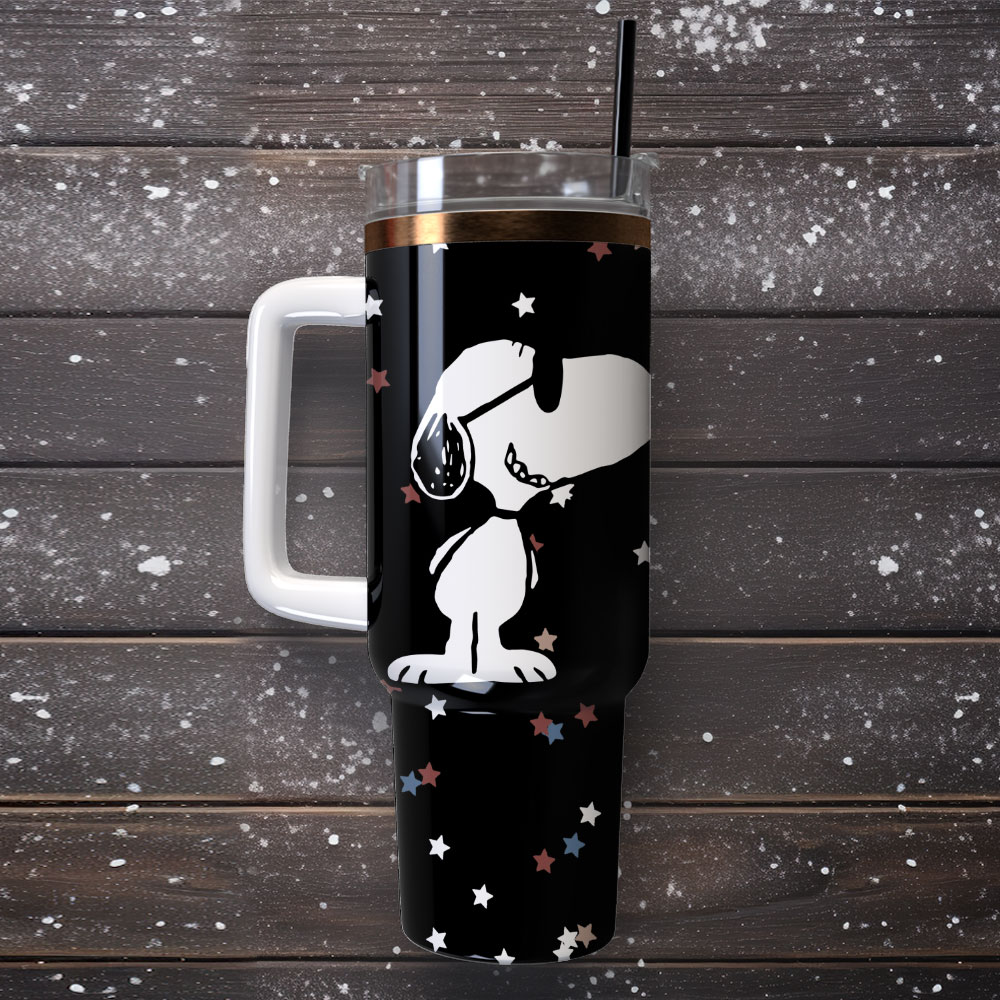 Enjoy your drinks on the go with this stylish travel mug featuring a fun cartoon design. Durable, spill-proof, and perfect for any beverage.