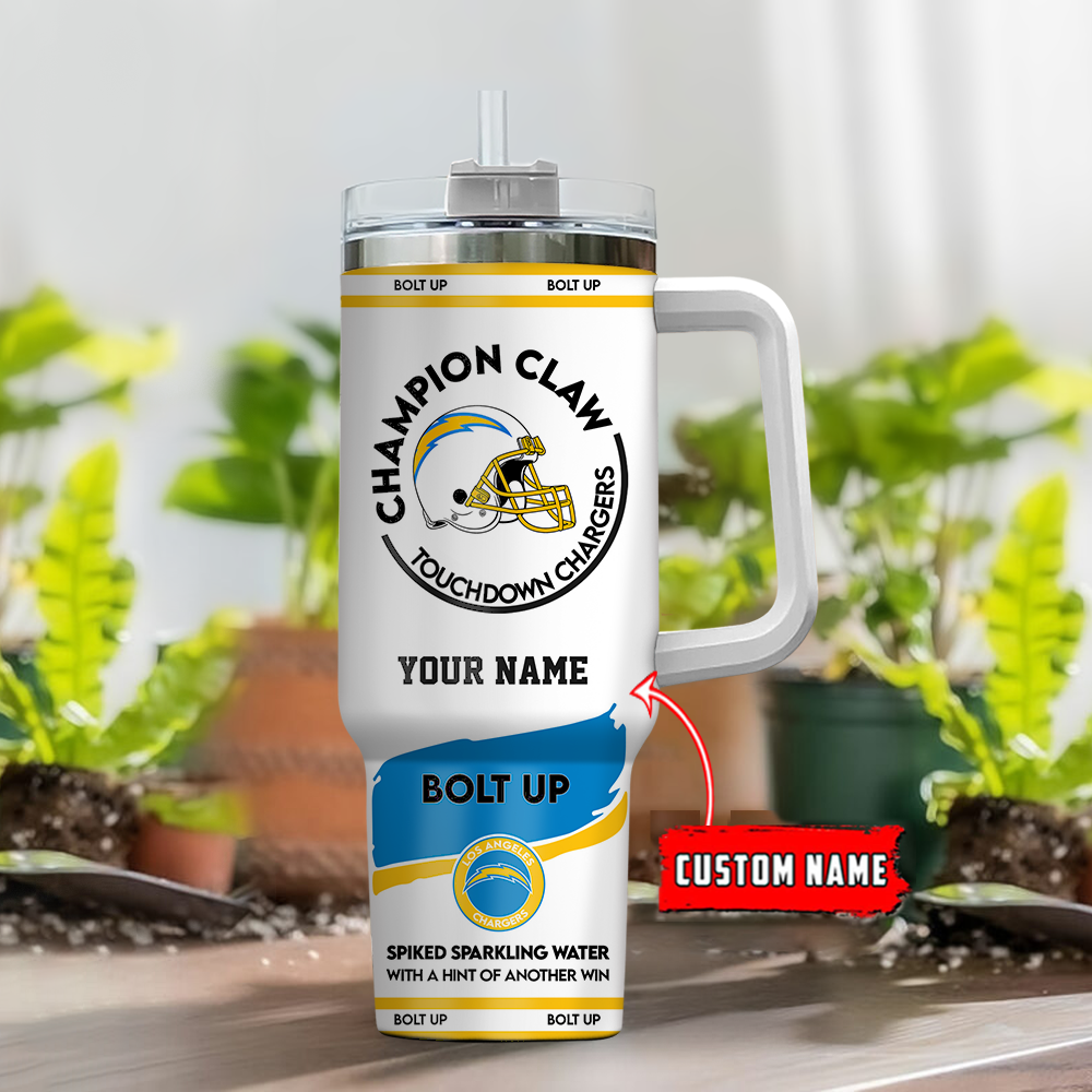 Show your team spirit with this custom Chargers fan mug! Personalize it with your name and enjoy your favorite spiked sparkling water in style.