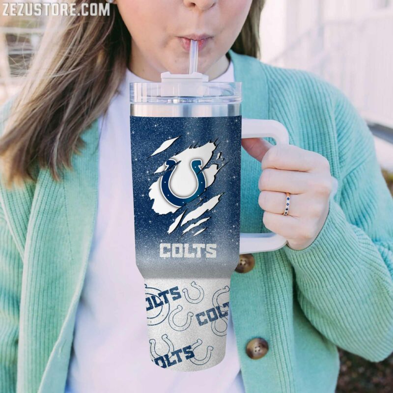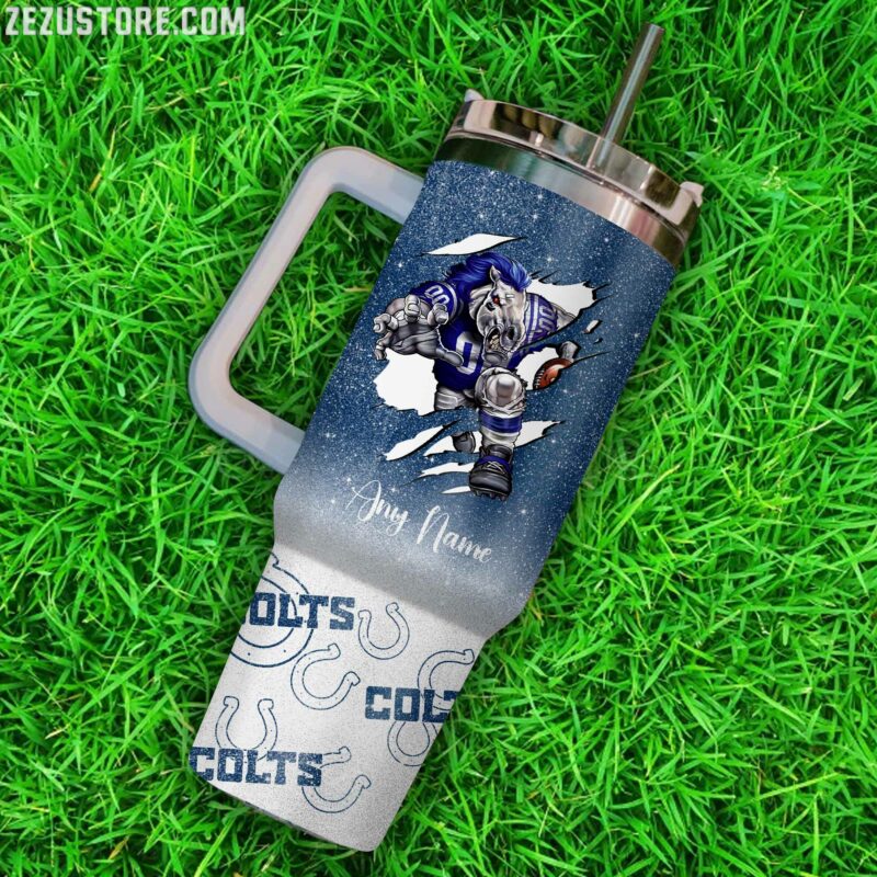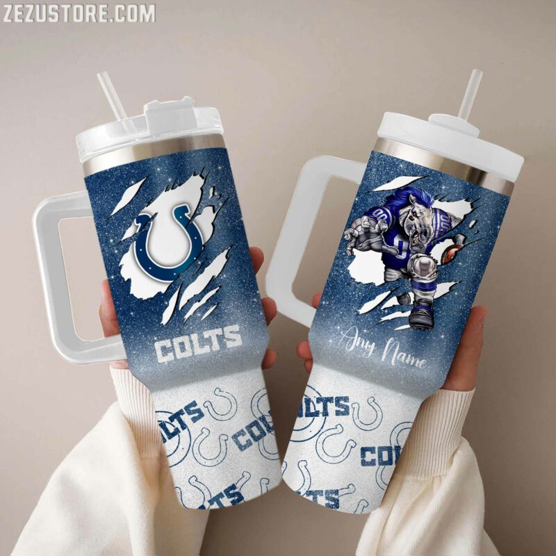 Show off your team spirit with this personalized Colts tumbler. Keep your drinks hot or cold in style with a convenient handle for easy carrying.
