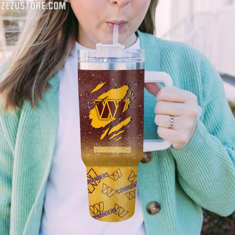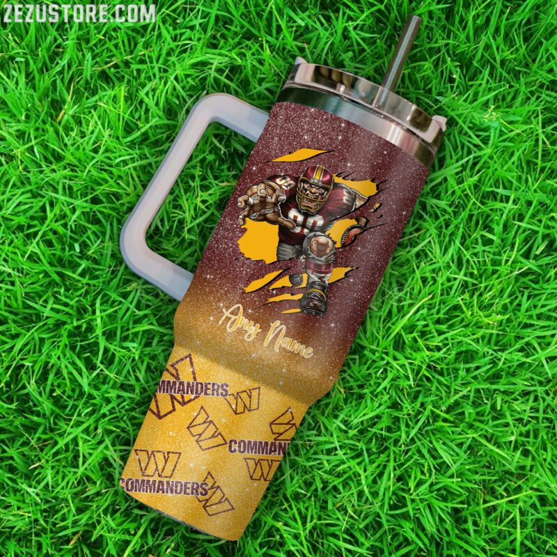 Stay hydrated in style with this custom Commanders tumbler. Perfect for sports fans, this tumbler features a handle and can be personalized with any name.
