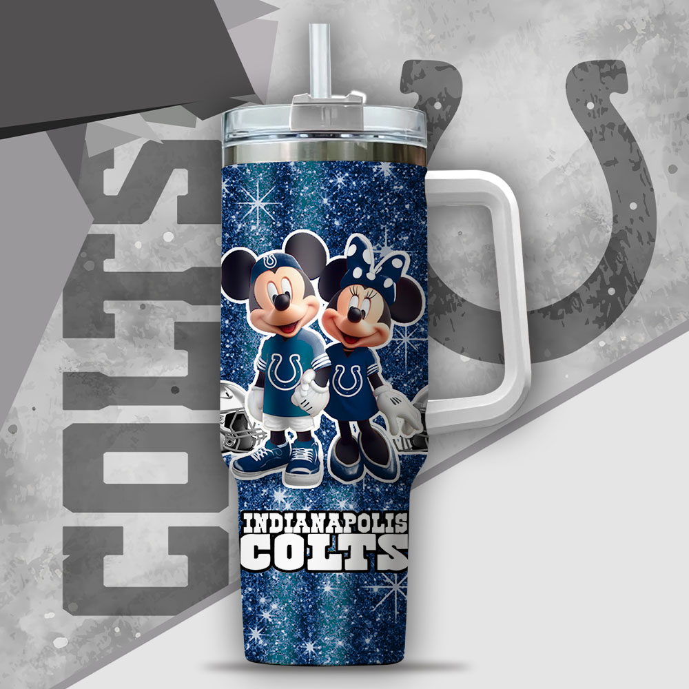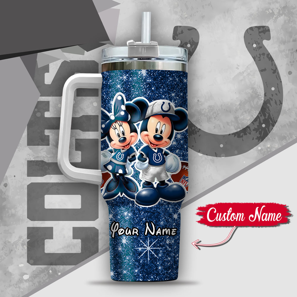 Custom Disney Mickey & Minnie Indianapolis Colts Glitter Tumbler with Handle