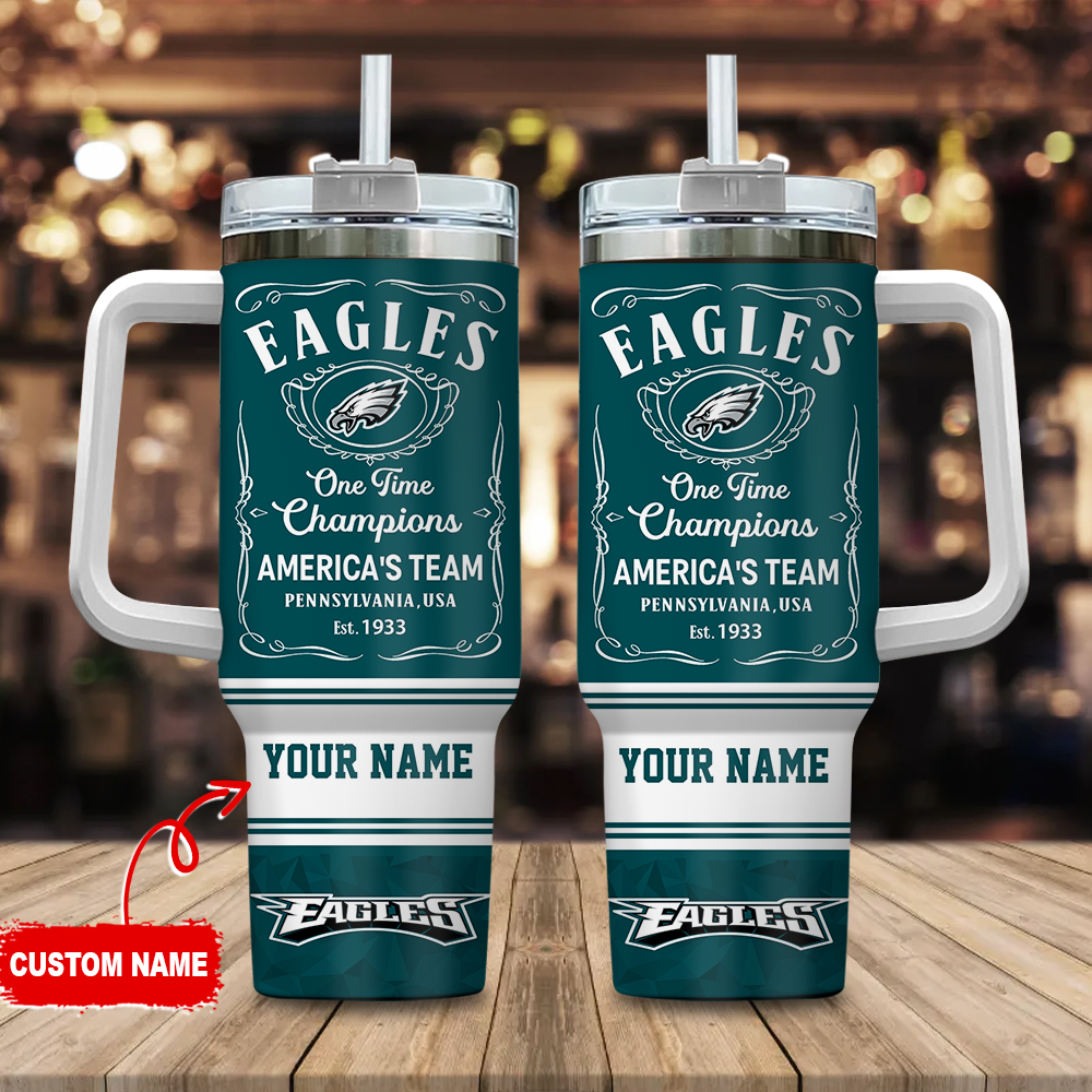 Custom Eagles Champions Personalized Tumbler with Handle & Straw – Perfect Gift for Fans