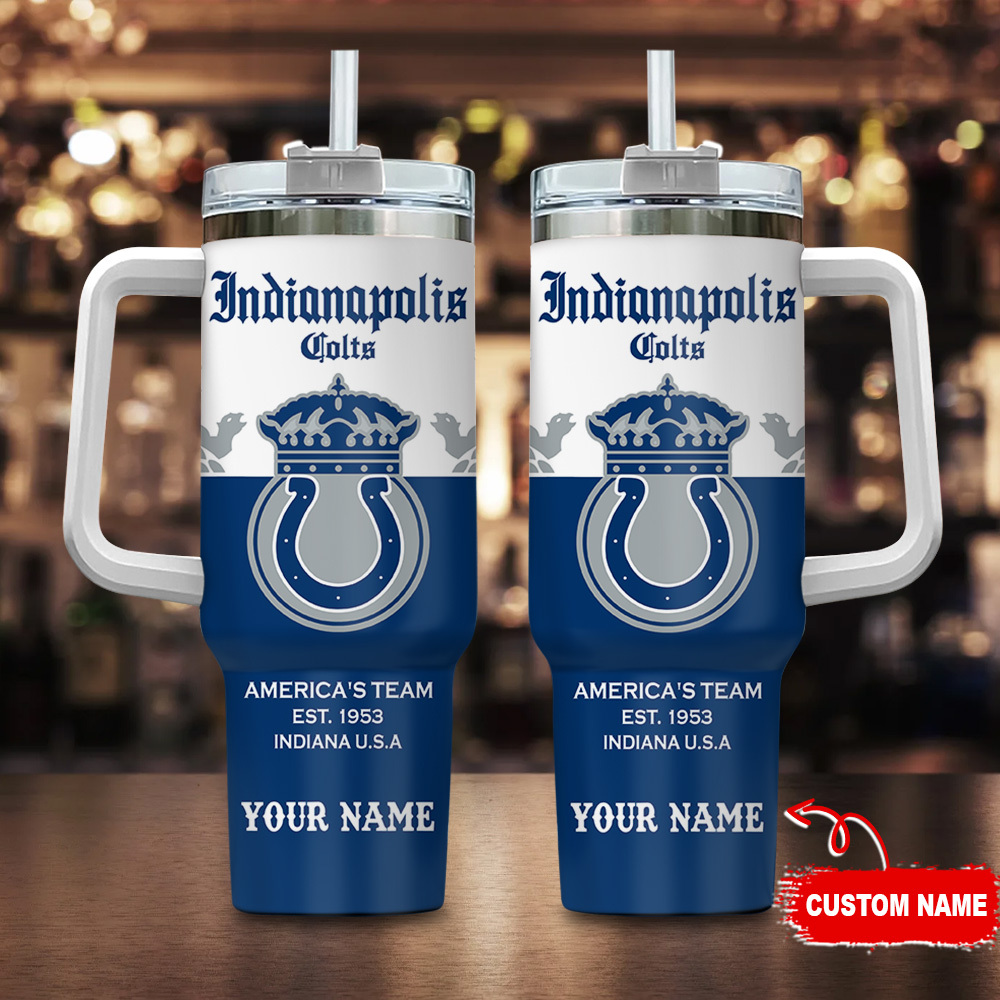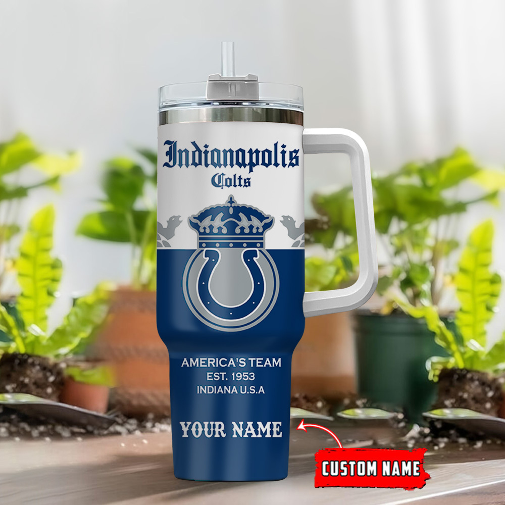 Show your team spirit with this custom Indianapolis Colts tumbler. Perfect for game days and personalized with your name!