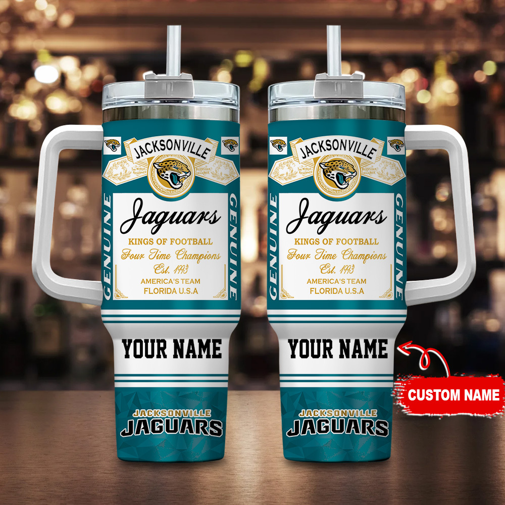 Show your team pride with this customizable Jacksonville Jaguars tumbler. Perfect for any fan, this tumbler keeps your drinks hot or cold while showcasing your loyalty.