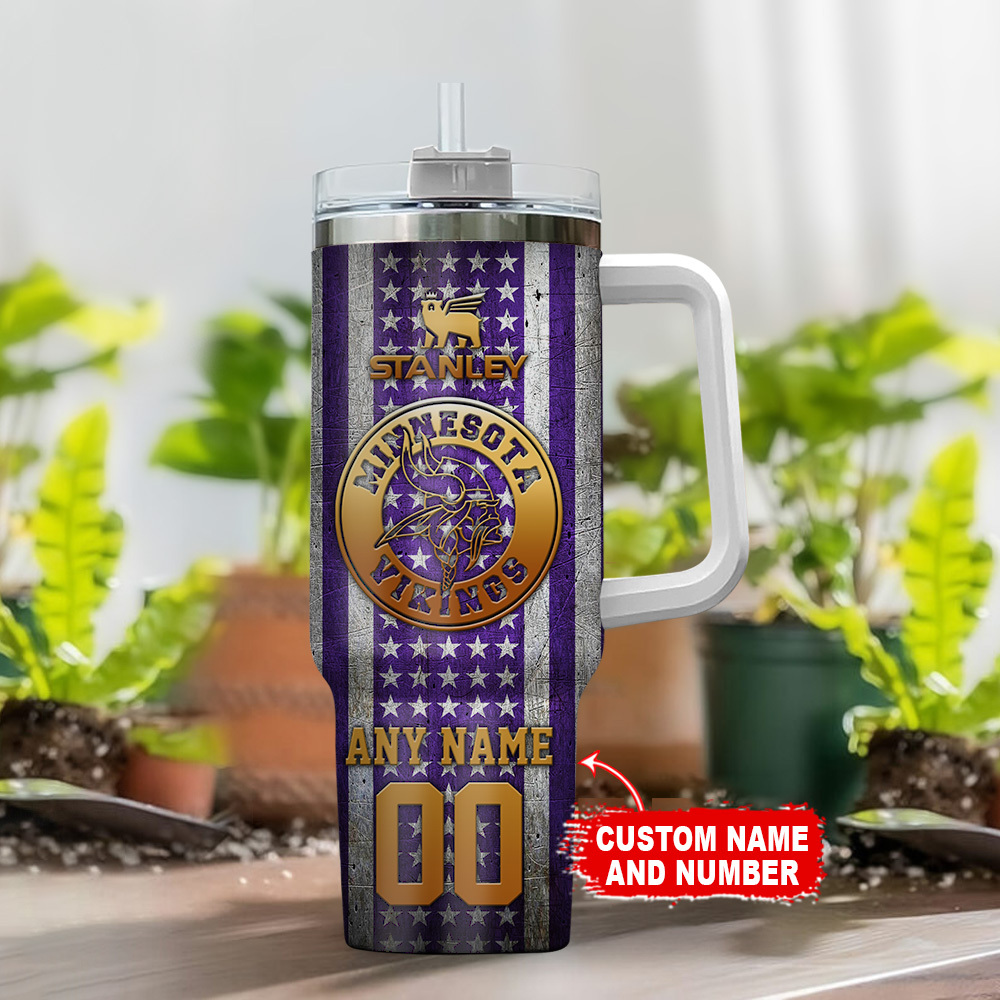 Show your team spirit with this customizable Minnesota Vikings tumbler. Add your name and number for a personalized touch. Perfect for fans on the go!