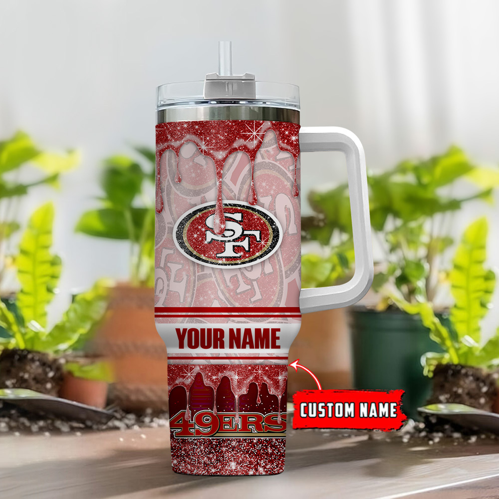 Custom Name 49ers Glitter Tumbler with Handle & Straw – Perfect Gift for Fans
