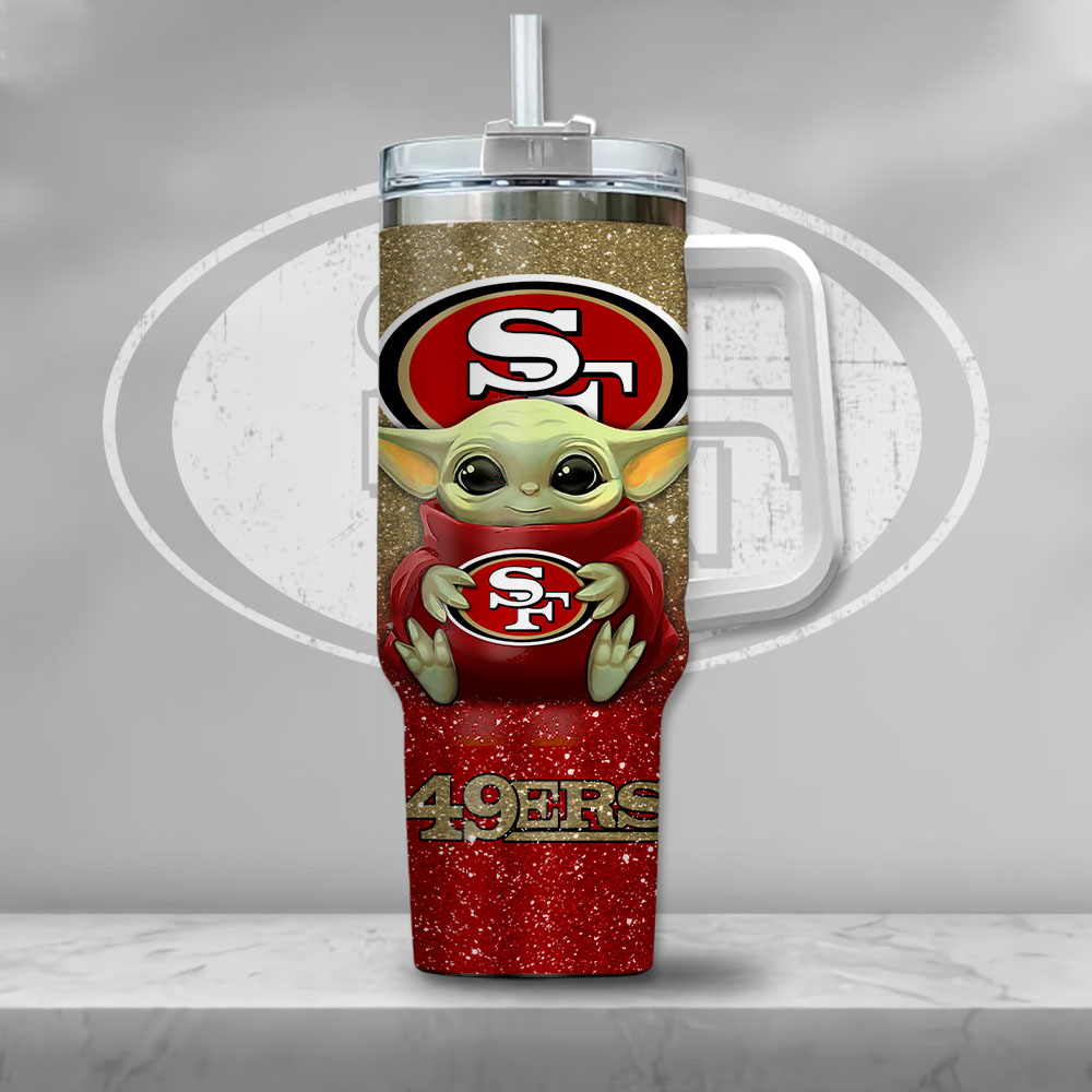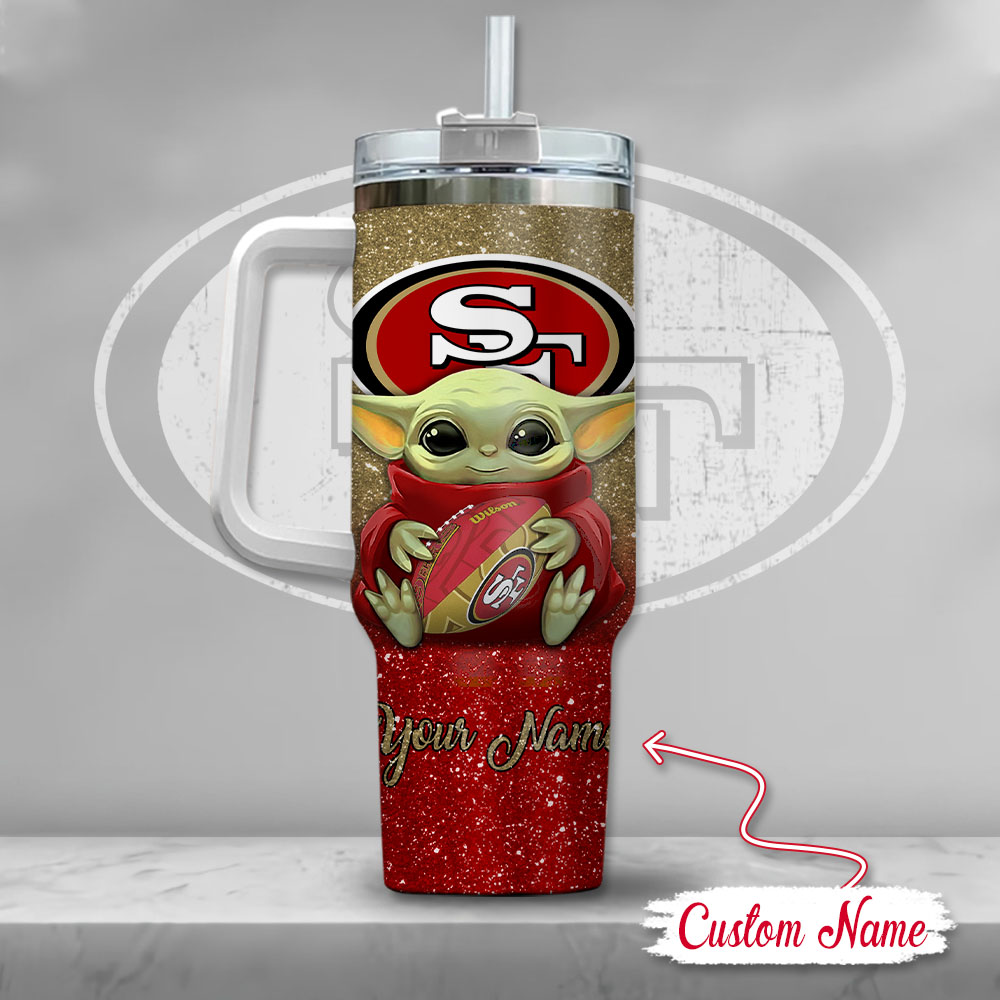 Stay refreshed with this custom name tumbler featuring a cute baby alien design and 49ers theme. Perfect for fans and a unique gift idea!