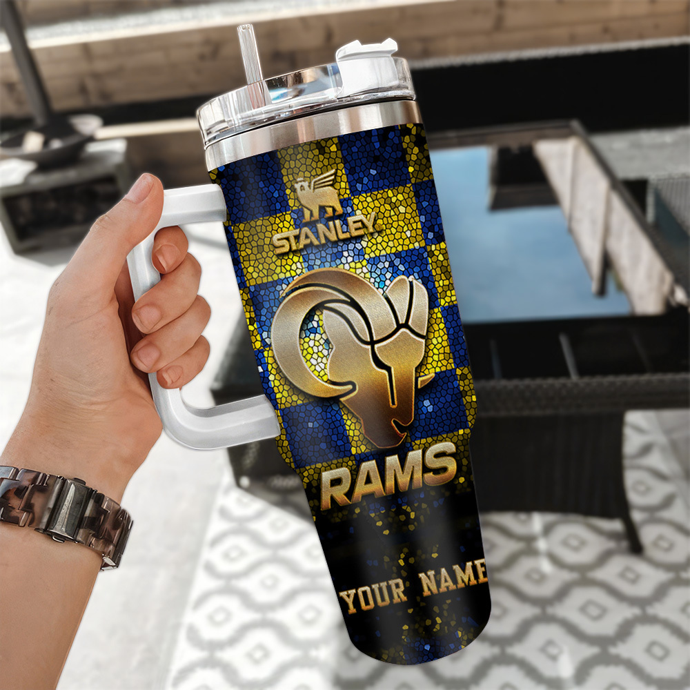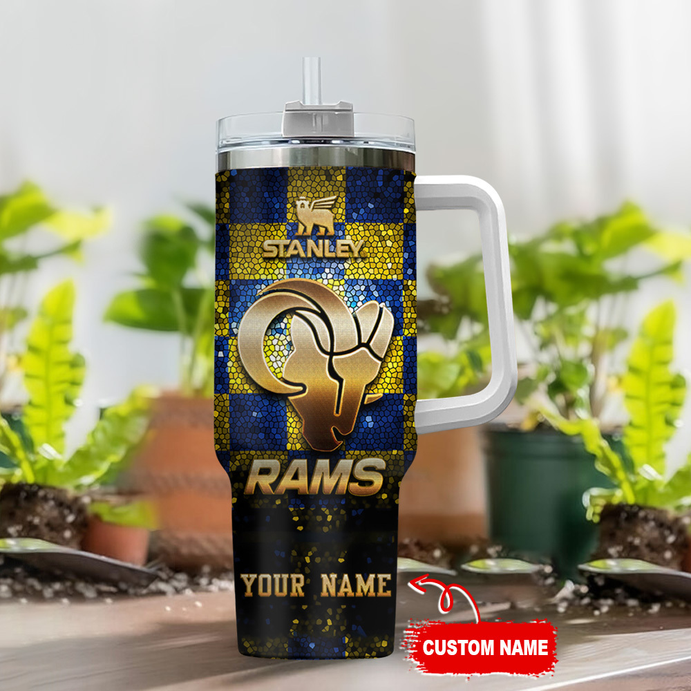 Show your team spirit with this customizable Rams tumbler! Perfect for game days, this tumbler keeps your drinks hot or cold while featuring your name.