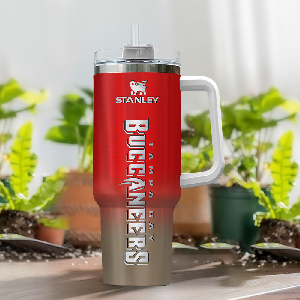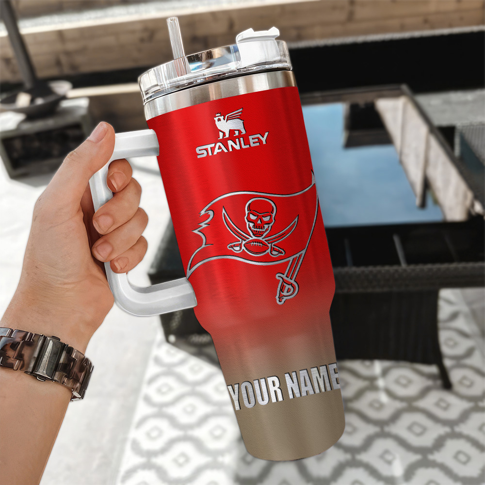 Show your team spirit with this personalized Tampa Bay Buccaneers tumbler. Durable stainless steel with a convenient handle and custom name option.