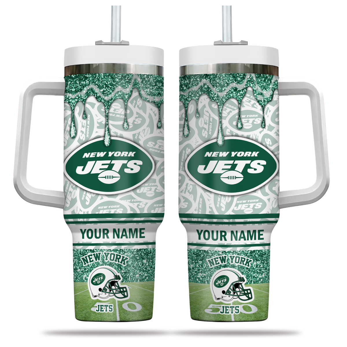 Show your team pride with this custom New York Jets tumbler. Personalize it with your name for the ultimate fan experience.