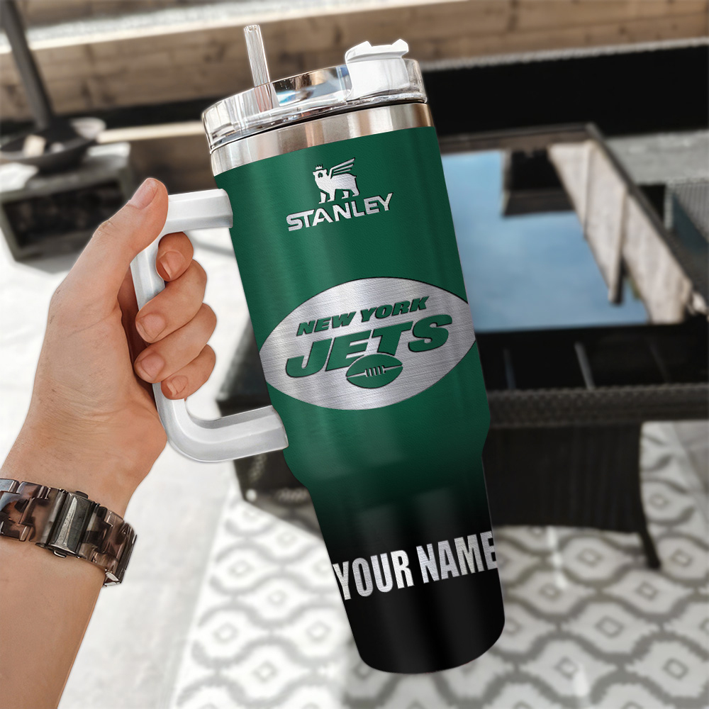 Show your team pride with this custom New York Jets tumbler. Personalize it with your name for the perfect gift or game day companion.