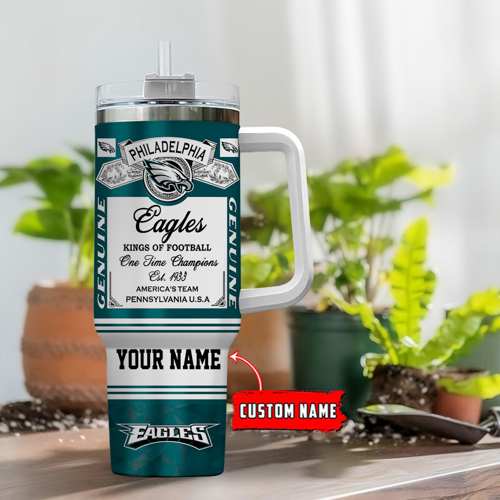 Show your Eagles pride with this custom tumbler mug. Perfect for game day, featuring a personalized design and comfortable handle.