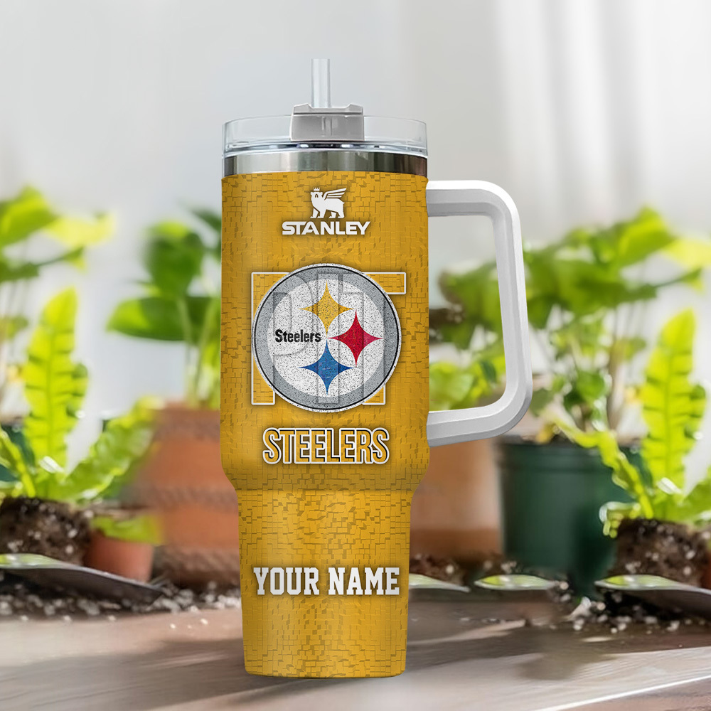 Custom Steelers Tumbler with Handle – Personalized Insulated Mug