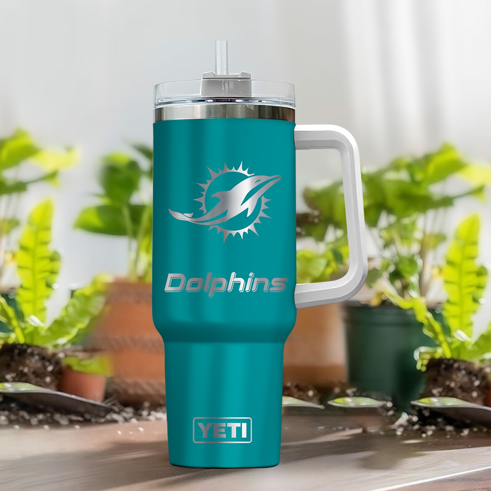Custom YETI Tumbler – Personalized NFL Dolphins Design with Your Name