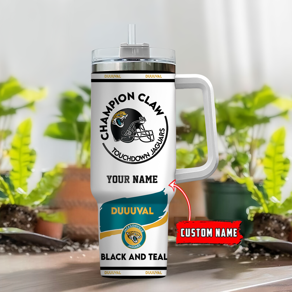 Show your team spirit with this customizable Jaguars tumbler. Perfect for game days, this durable mug features a handle and can be personalized with your name.