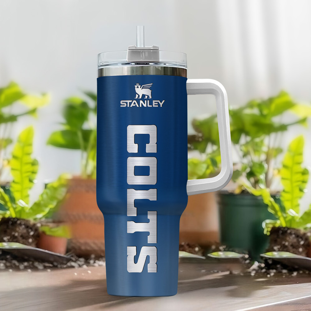 Show off your team spirit with this durable Colts tumbler. Features a straw, handle, and customizable name for a personal touch.