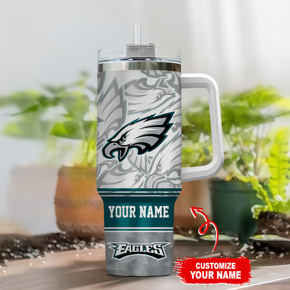 Show your team spirit with this customizable Eagles tumbler. Add your name for a unique, personal touch. Perfect for fans and gifts.