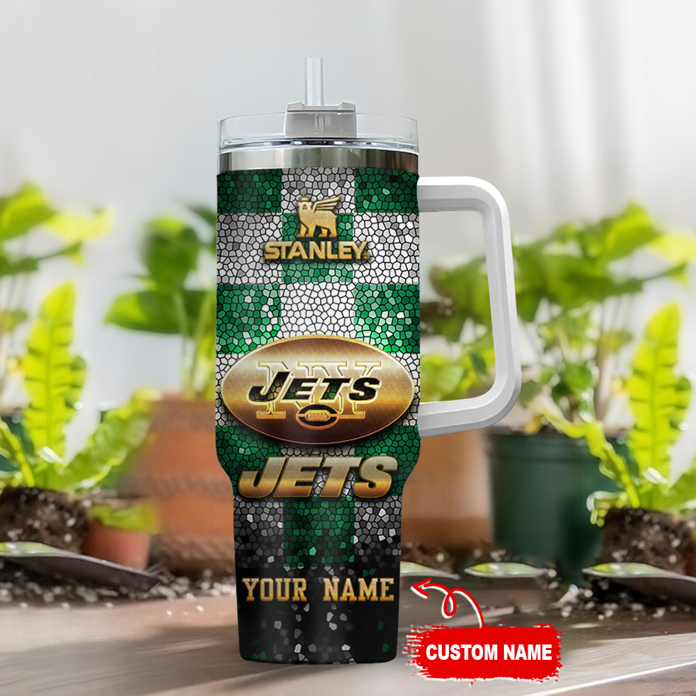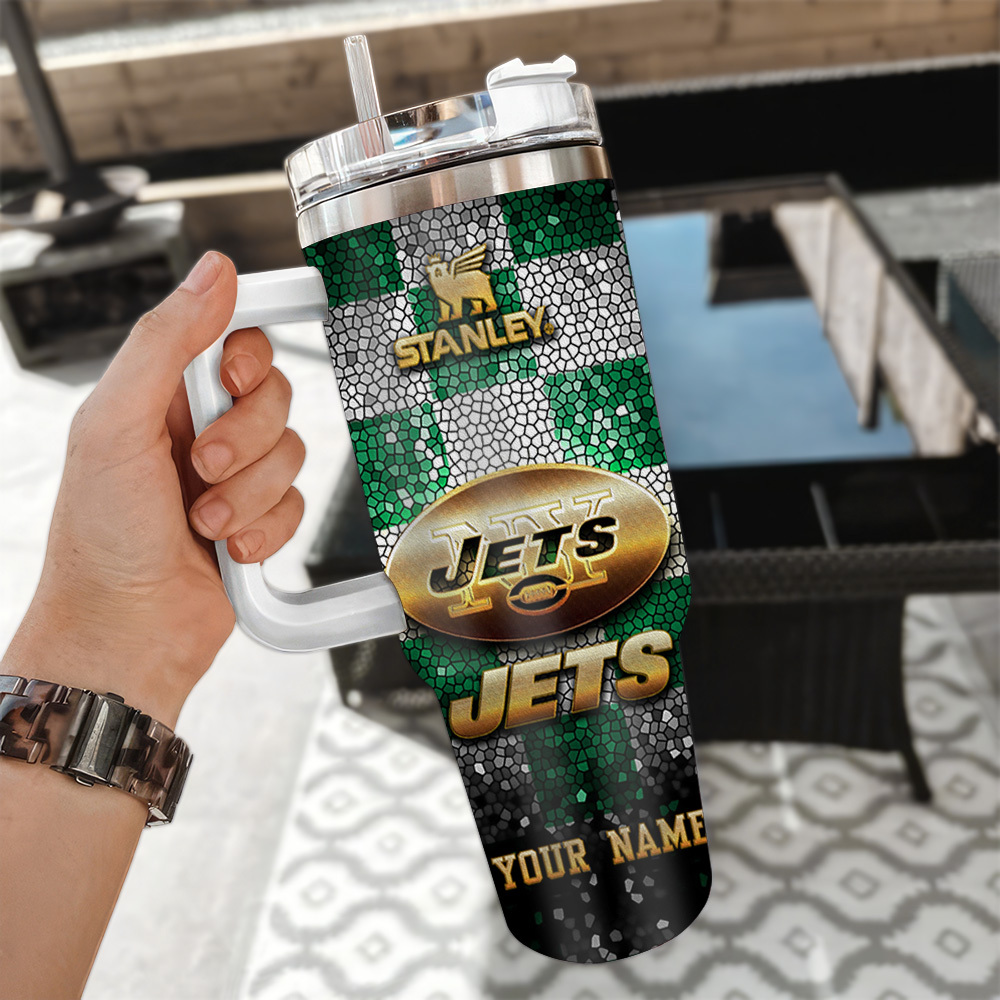 Show off your team spirit with this customizable Jets tumbler. Durable, stylish, and perfect for on-the-go hydration. Personalize with your name!