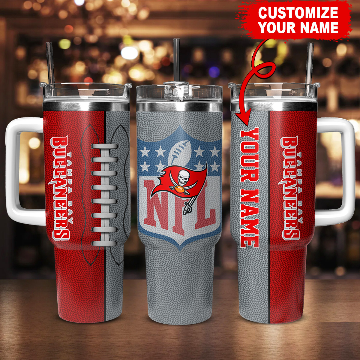 Show your team spirit with this customizable NFL tumbler. Perfect for game days or everyday use, add your name for a unique touch!