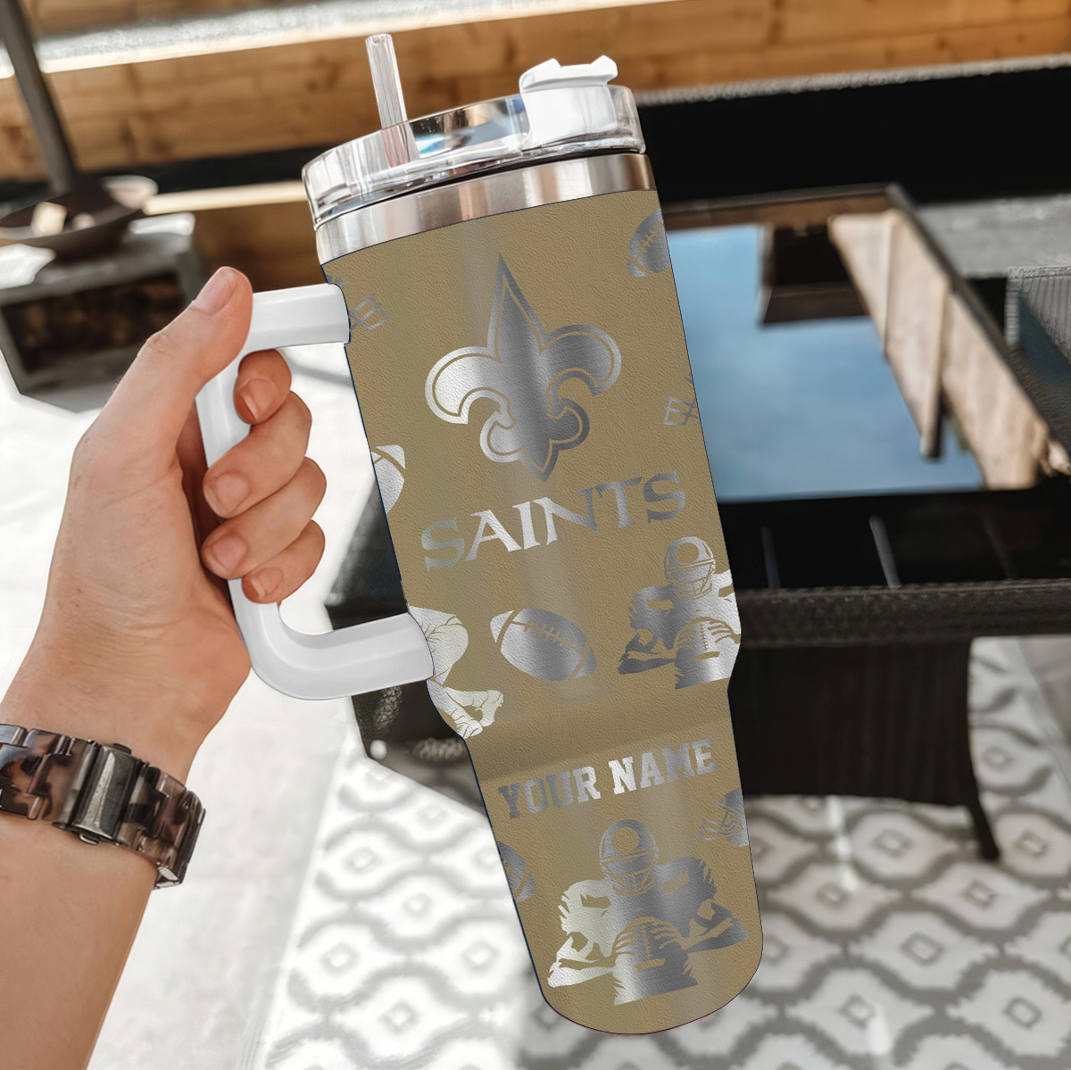Show your team spirit with this stylish Saints tumbler. Customize it with your name for a unique touch. Perfect for keeping drinks hot or cold on the go!