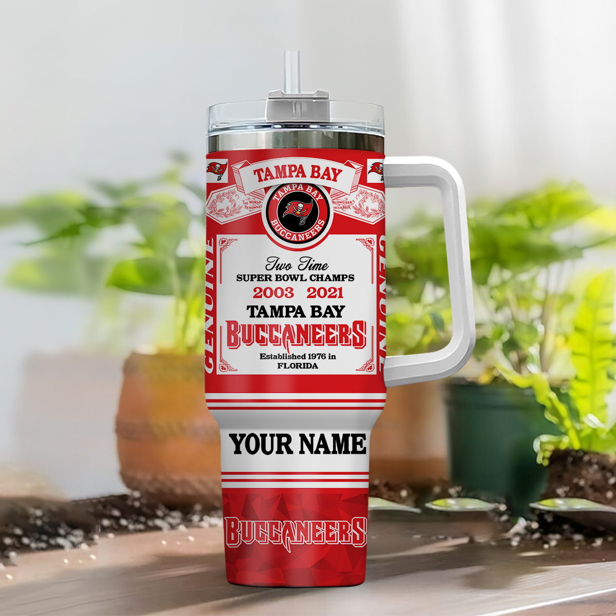Celebrate the Tampa Bay Buccaneers’ victories with this customizable travel mug. Perfect for fans, personalize it with your name for a unique touch!
