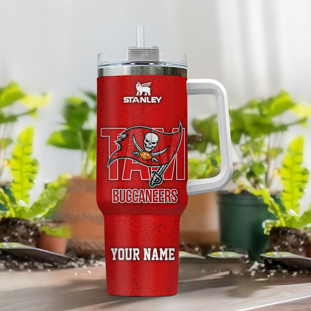 Show off your team spirit with this personalized Tampa Bay Buccaneers tumbler. Perfect for on-the-go, it keeps your drinks at the ideal temperature.