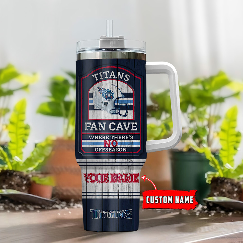 Show your team spirit with this customizable Titans Fan Cave tumbler. Perfect for any loyal fan, personalize it with your name. Ideal for game day or everyday use!
