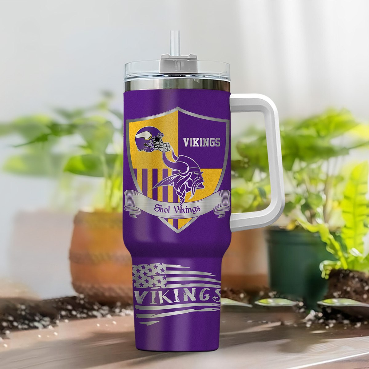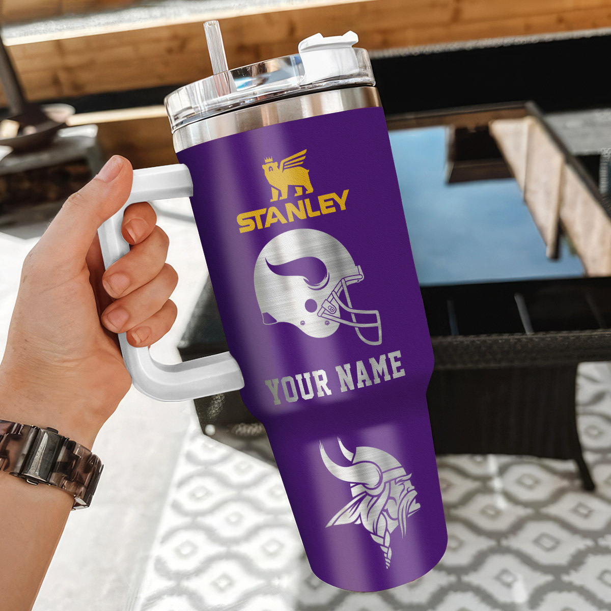 Show your team spirit with this customizable Vikings tumbler. With a sturdy handle and personalized name option, it’s perfect for fans on the go.