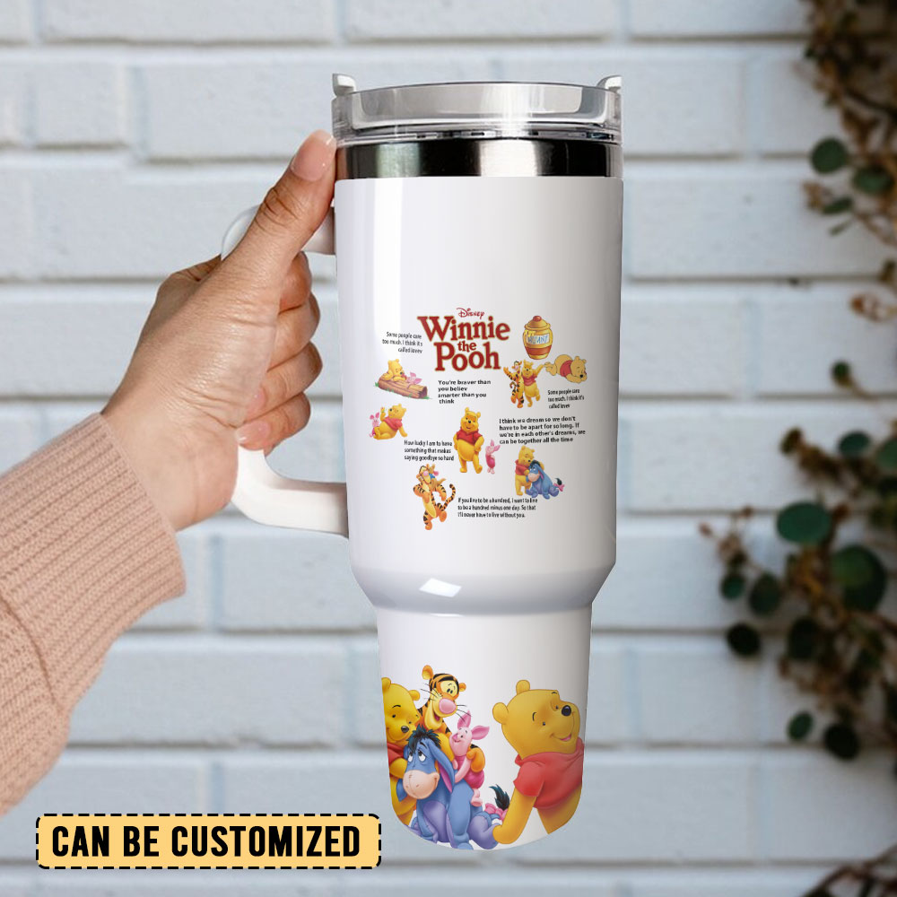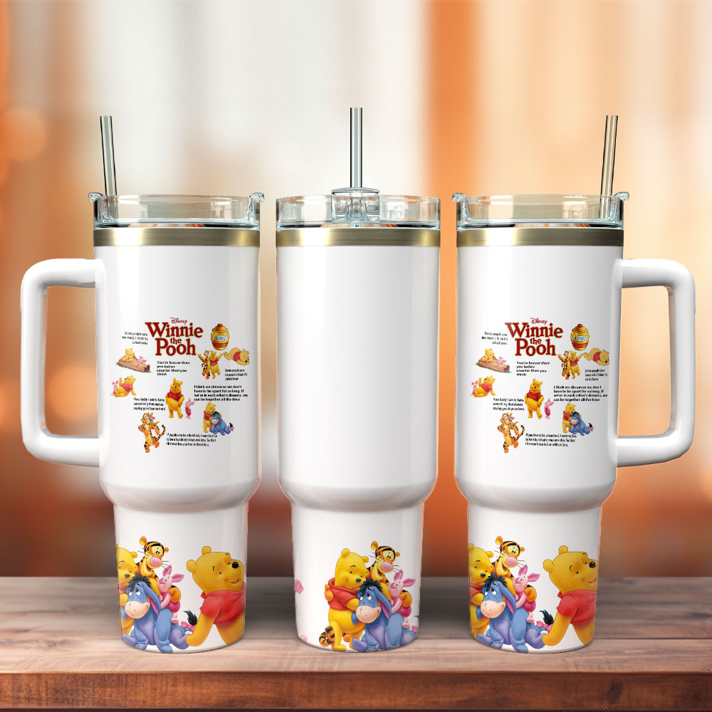 Enjoy your favorite drinks with this charming Winnie the Pooh tumbler. Features a secure lid, straw, and handle for easy sipping on the go.