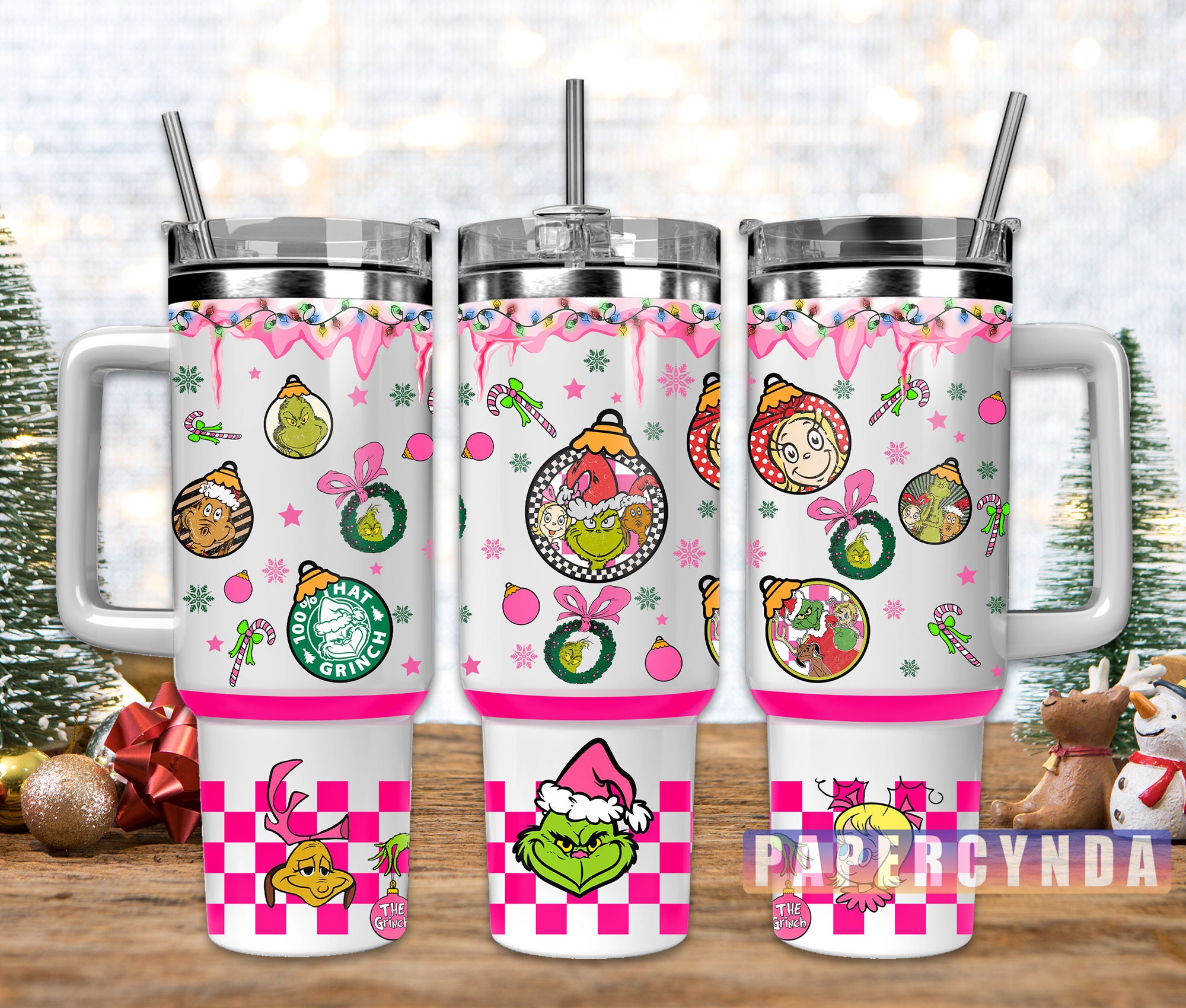 Enjoy your favorite drinks with this fun Grinch-themed tumbler. Featuring vibrant holiday designs, it comes with a straw and handle for easy sipping.