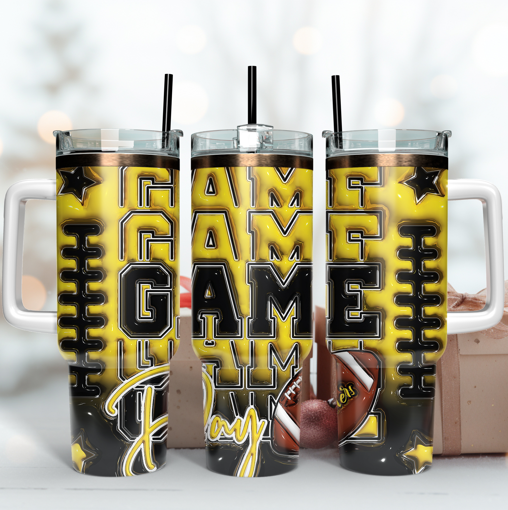 Stay refreshed with our Game Day Football Tumbler. Featuring a bold design and handle, it’s perfect for sports enthusiasts on the go.