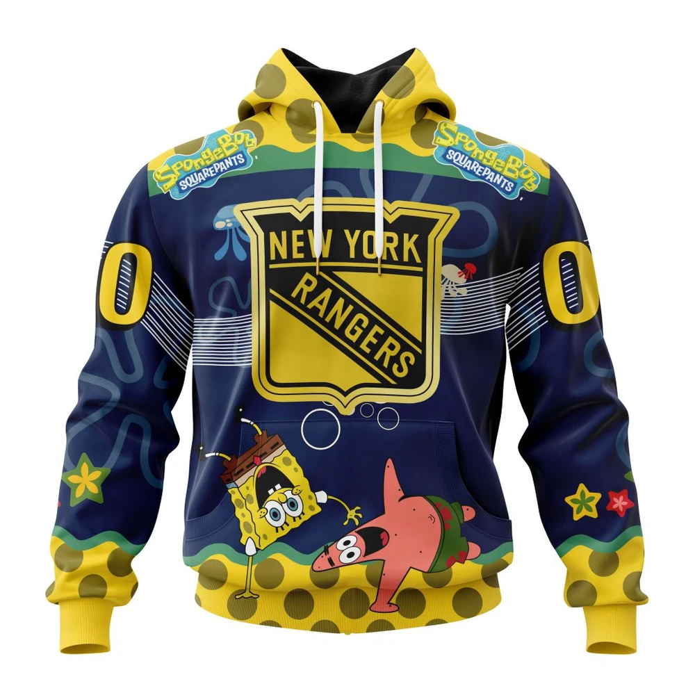 Hoodie NHL New York Rangers, Specialized Jersey With Spongebob QTNHL080524A3321HD