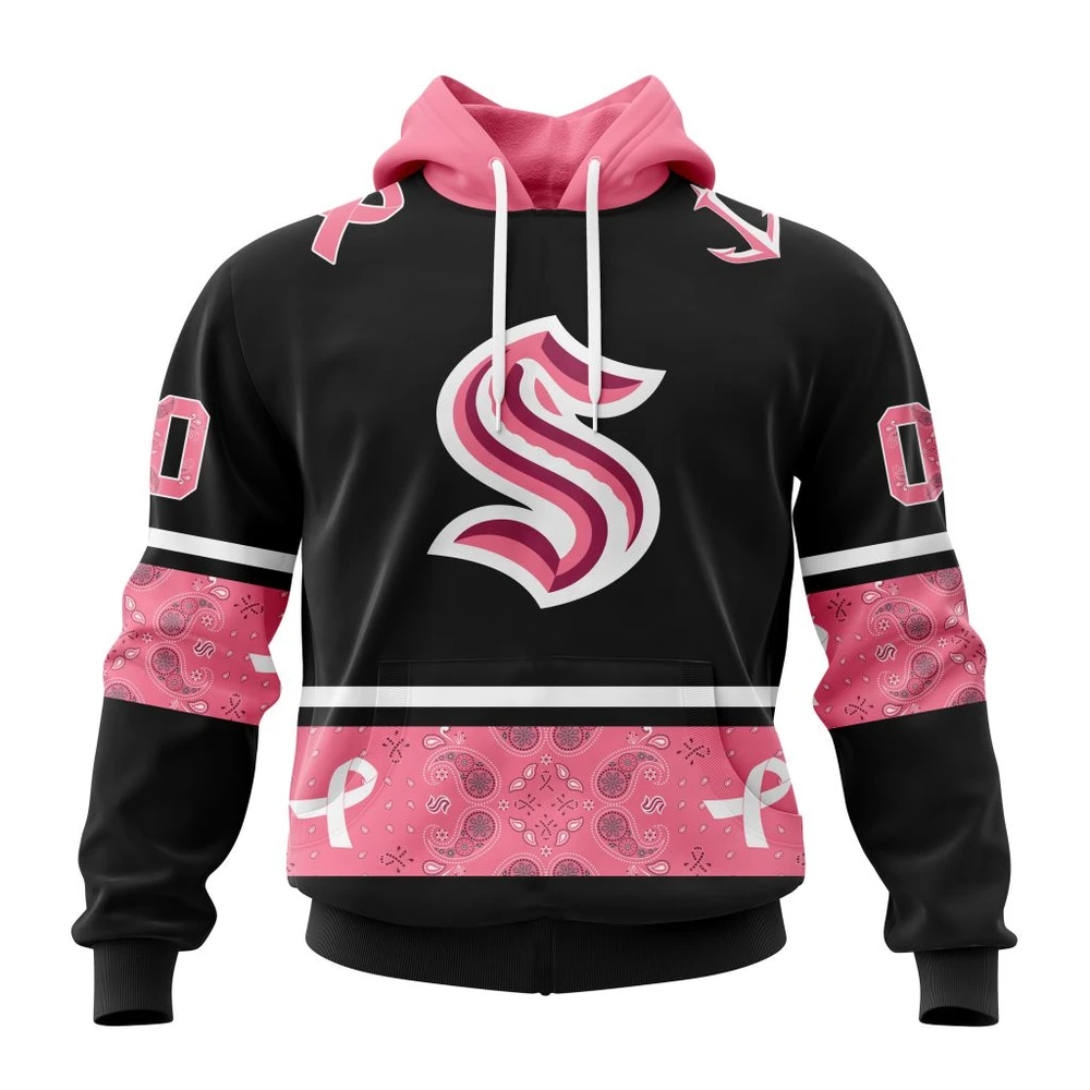 Hoodie NHL Seattle Kraken, Specialized Design In Classic Style With Paisley! In October We Wear Pink Breast Cancer QTNHL080524A3583HD