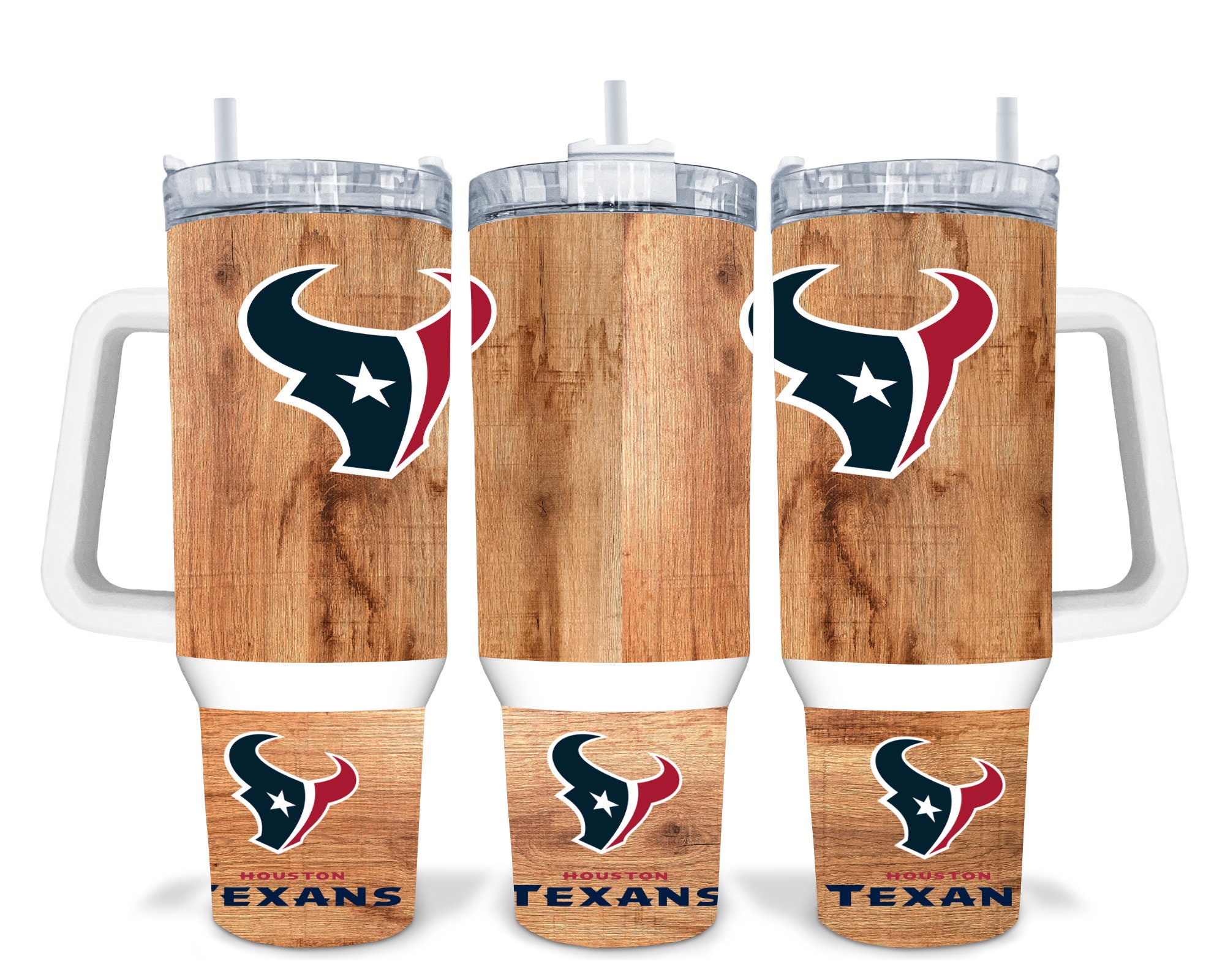 Houston Texans Wood-Style Tumbler with Handle & Straw – Perfect for Fans