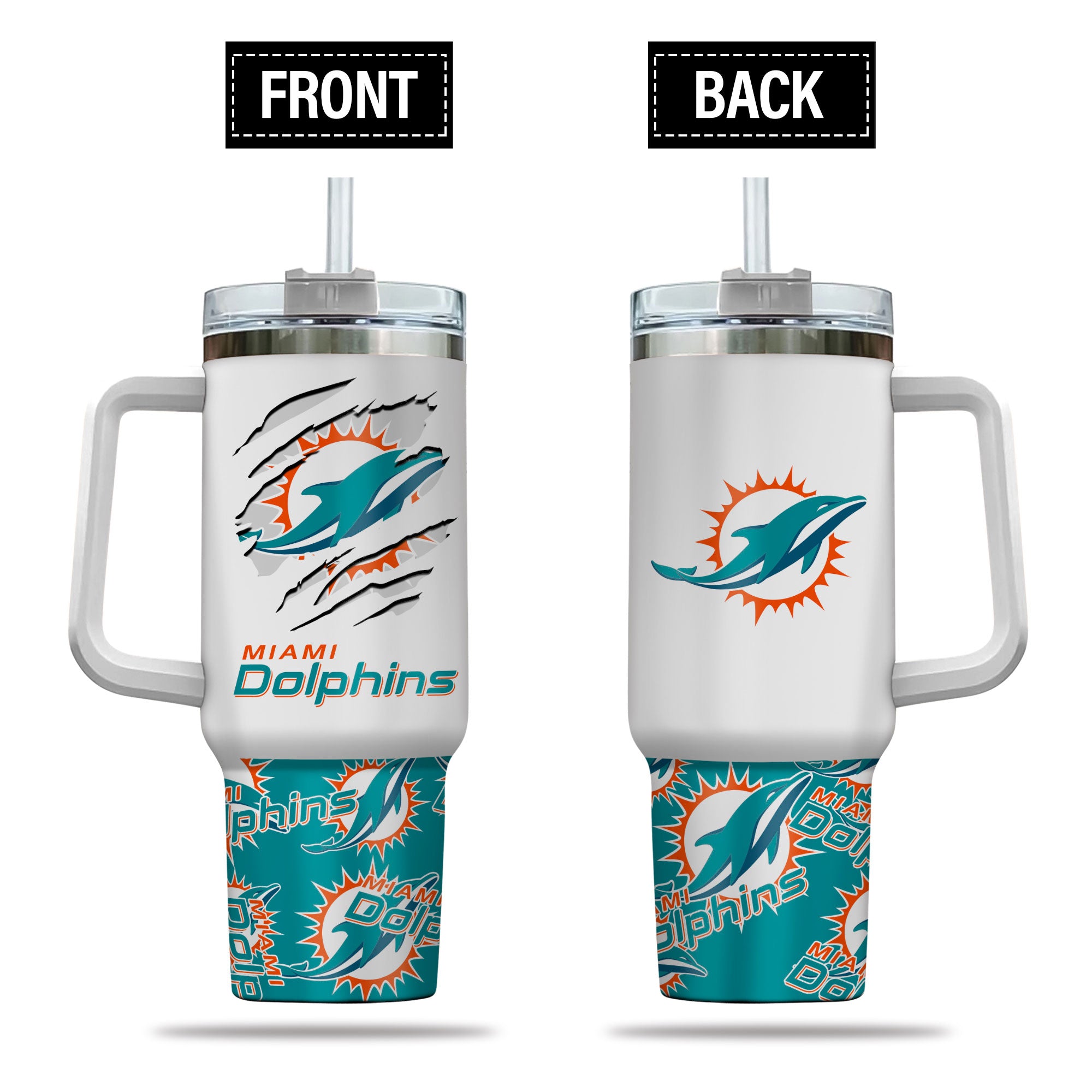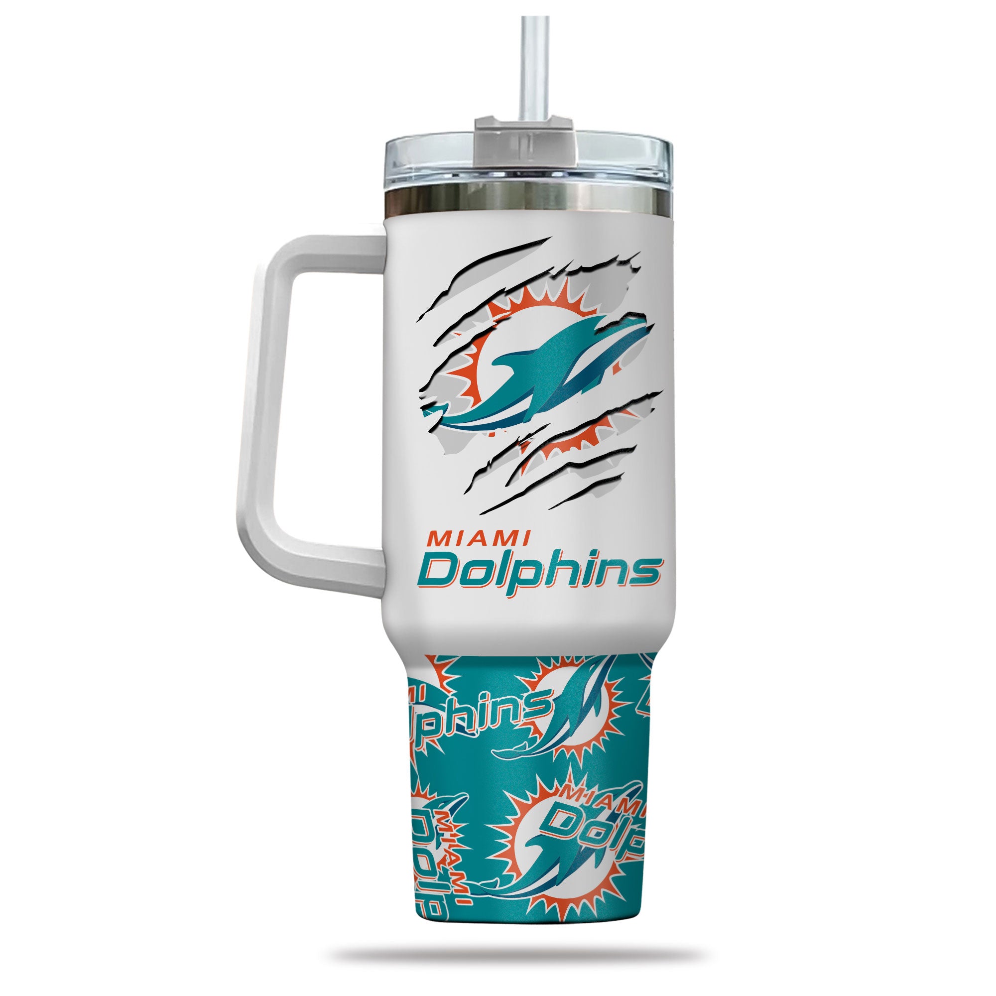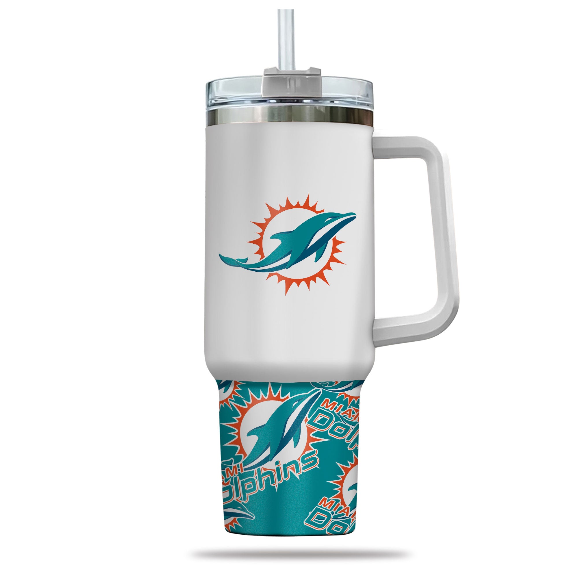 Miami Dolphins Insulated Tumbler with Handle & Straw – Perfect for Fans