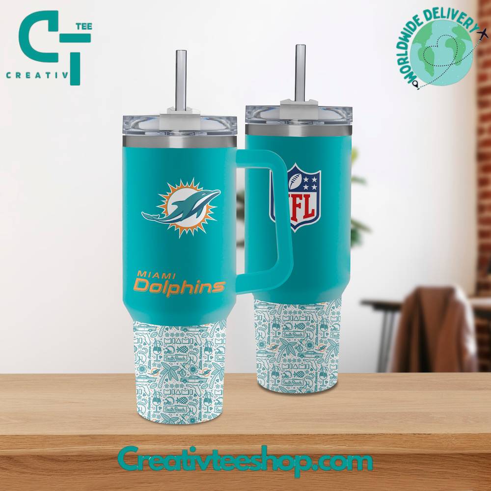 Stay hydrated in style with this Miami Dolphins tumbler featuring a secure lid and straw. Ideal for game days or everyday use.