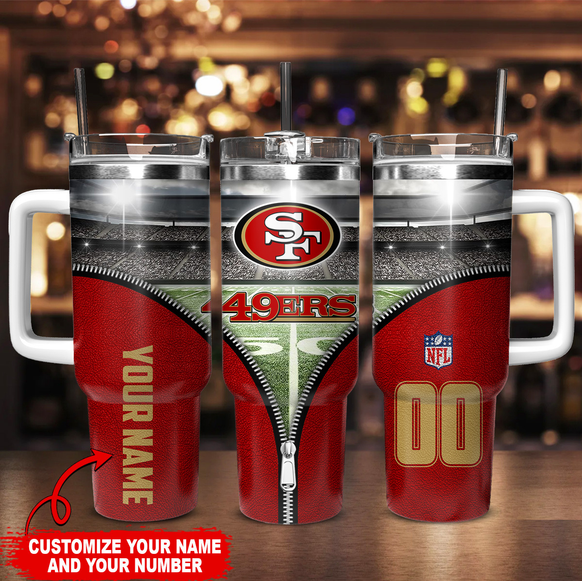 Show your team pride with this customizable 49ers tumbler. Add your name and number for a unique touch. Ideal for keeping drinks hot or cold.