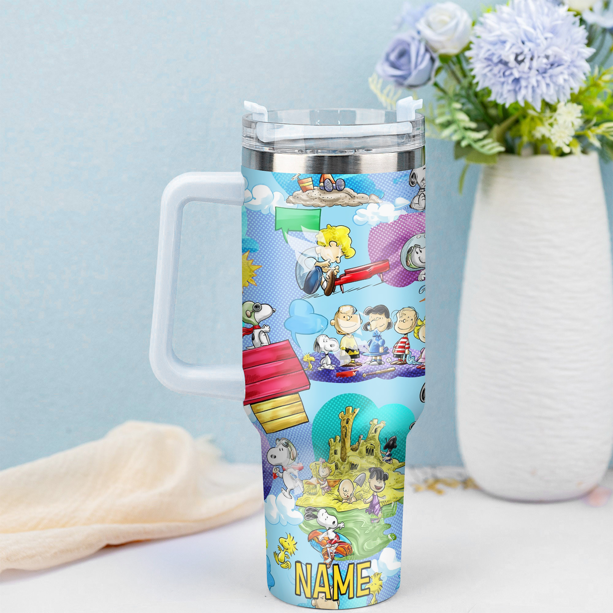 Enjoy your drinks in style with this vibrant, personalized tumbler featuring beloved cartoon characters. Perfect for kids and fans alike.