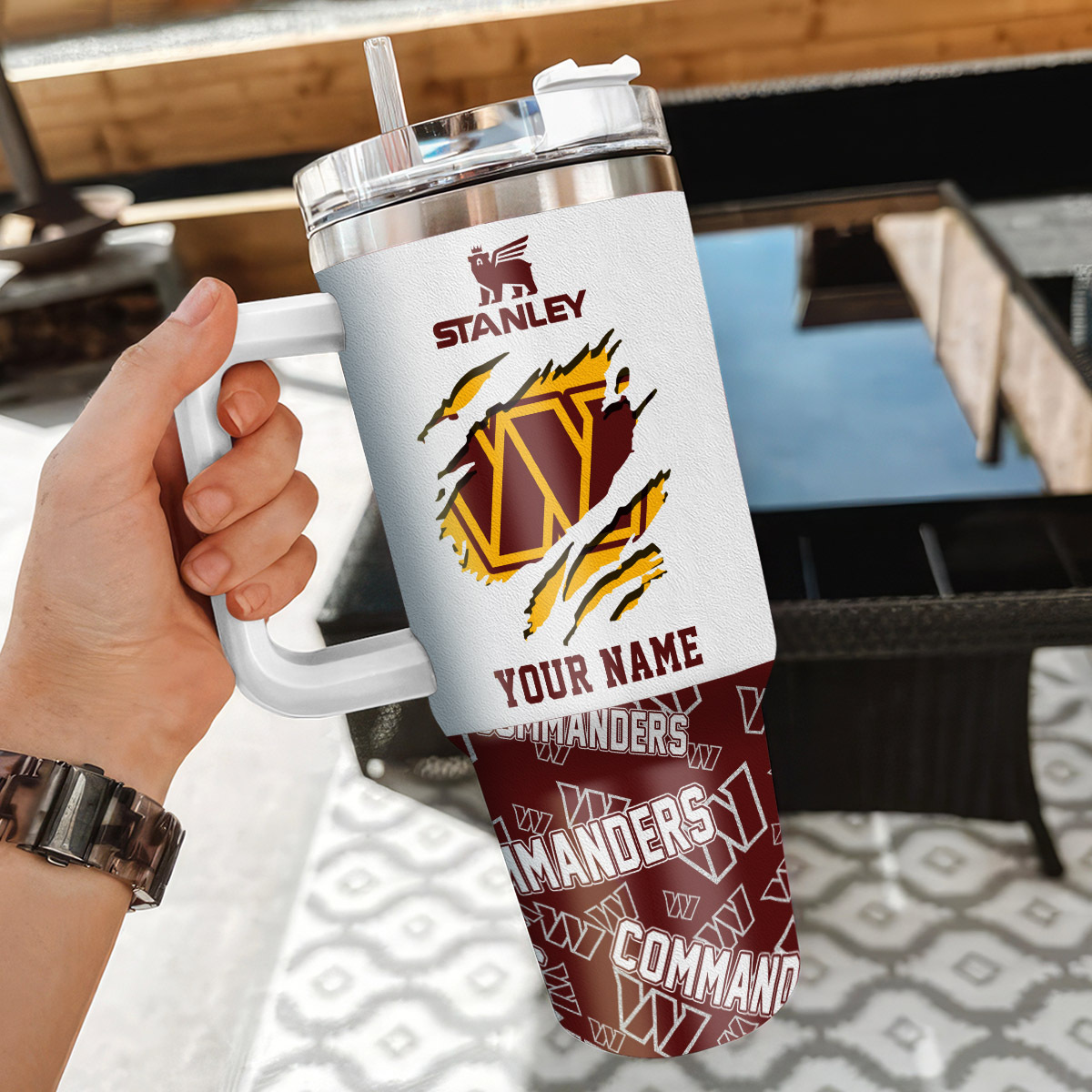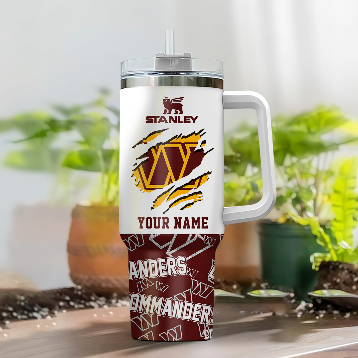 Show off your team spirit with this customizable Commanders travel mug. Durable and stylish, it keeps drinks hot or cold while featuring your name and team logo.
