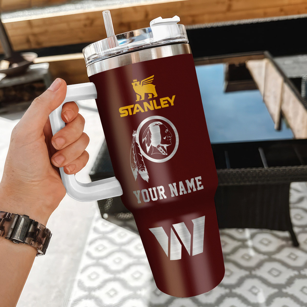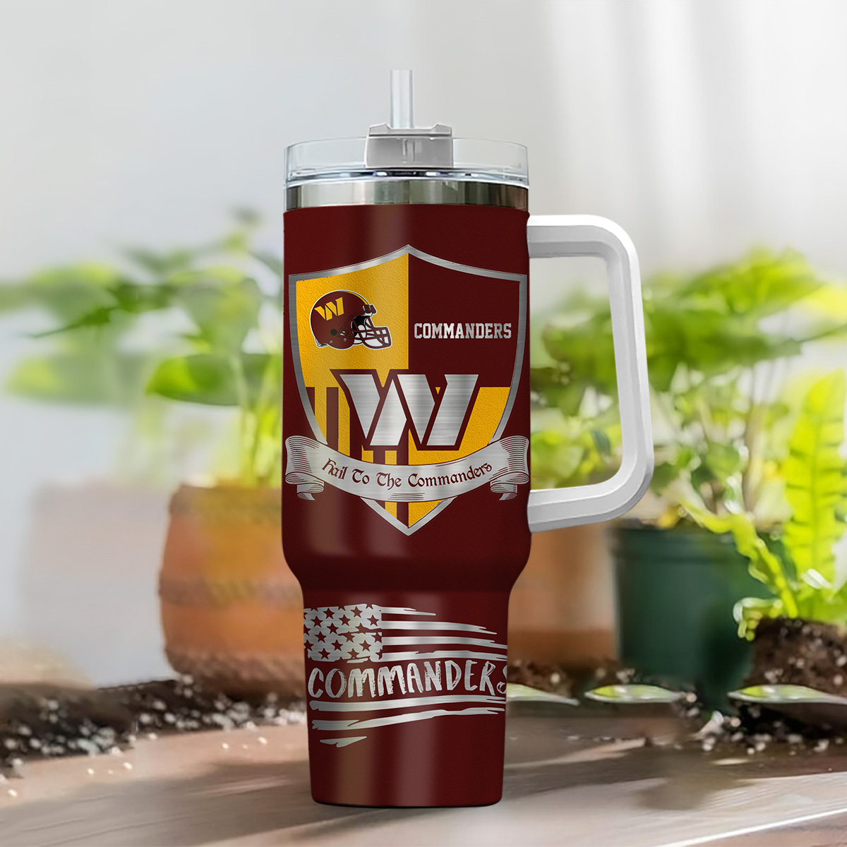 Show your pride with this customizable Commanders tumbler. Add your name for a unique touch. Durable, stylish, and perfect for any fan.