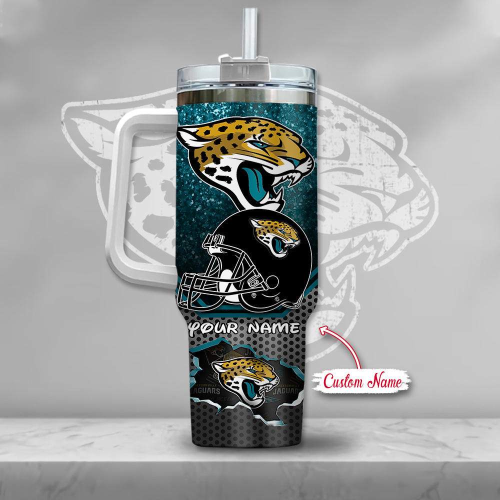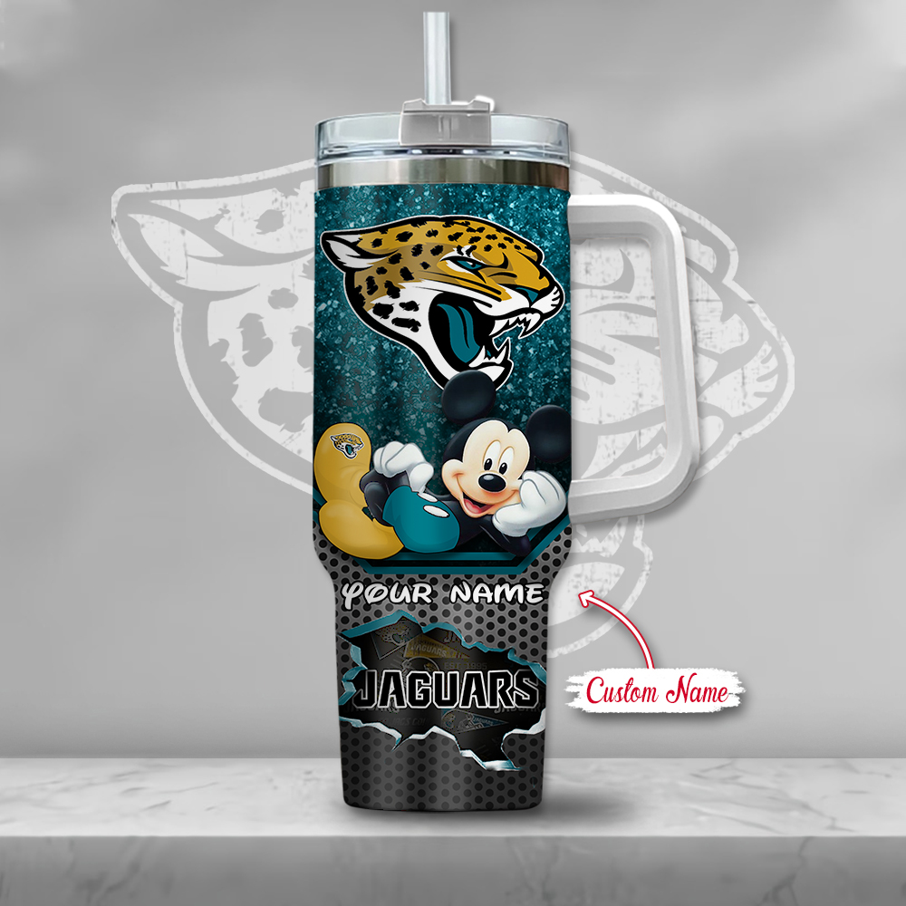 Stay refreshed with this custom tumbler featuring a bold Jaguars and mouse design. Personalize it with your name for a unique touch.