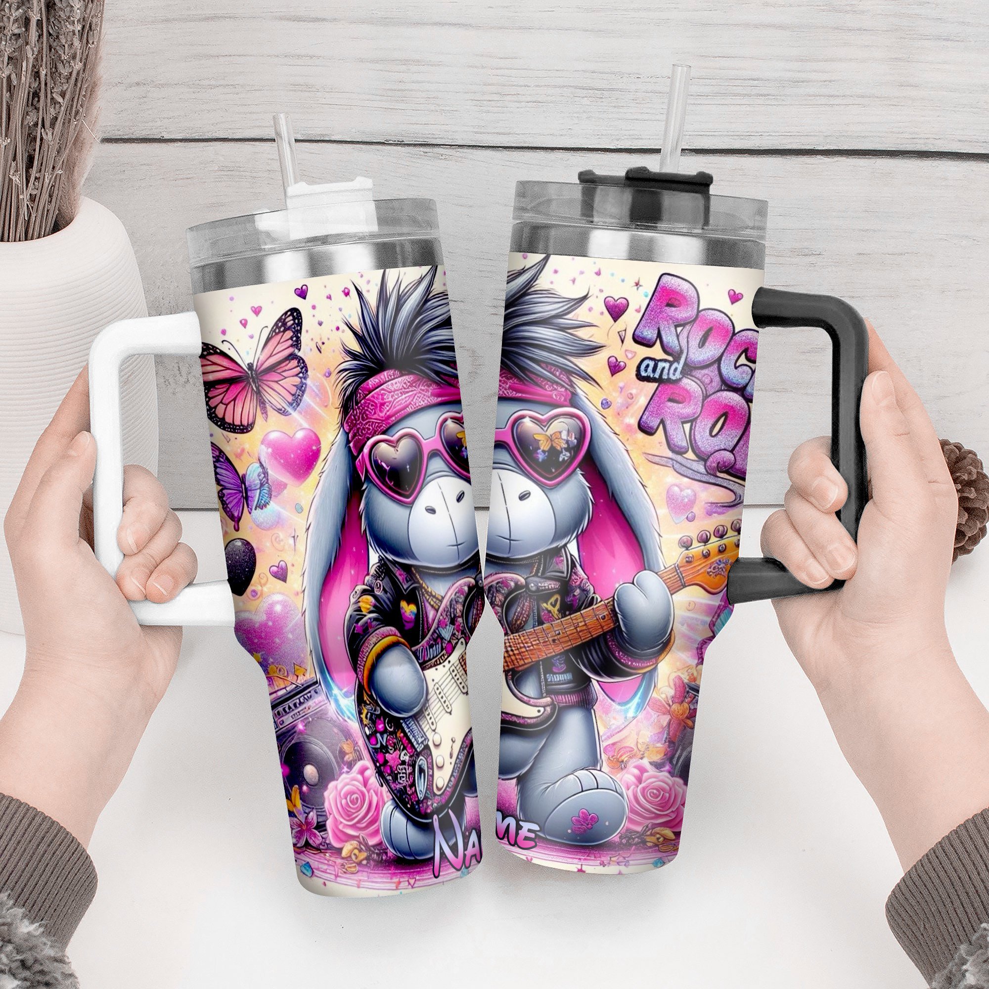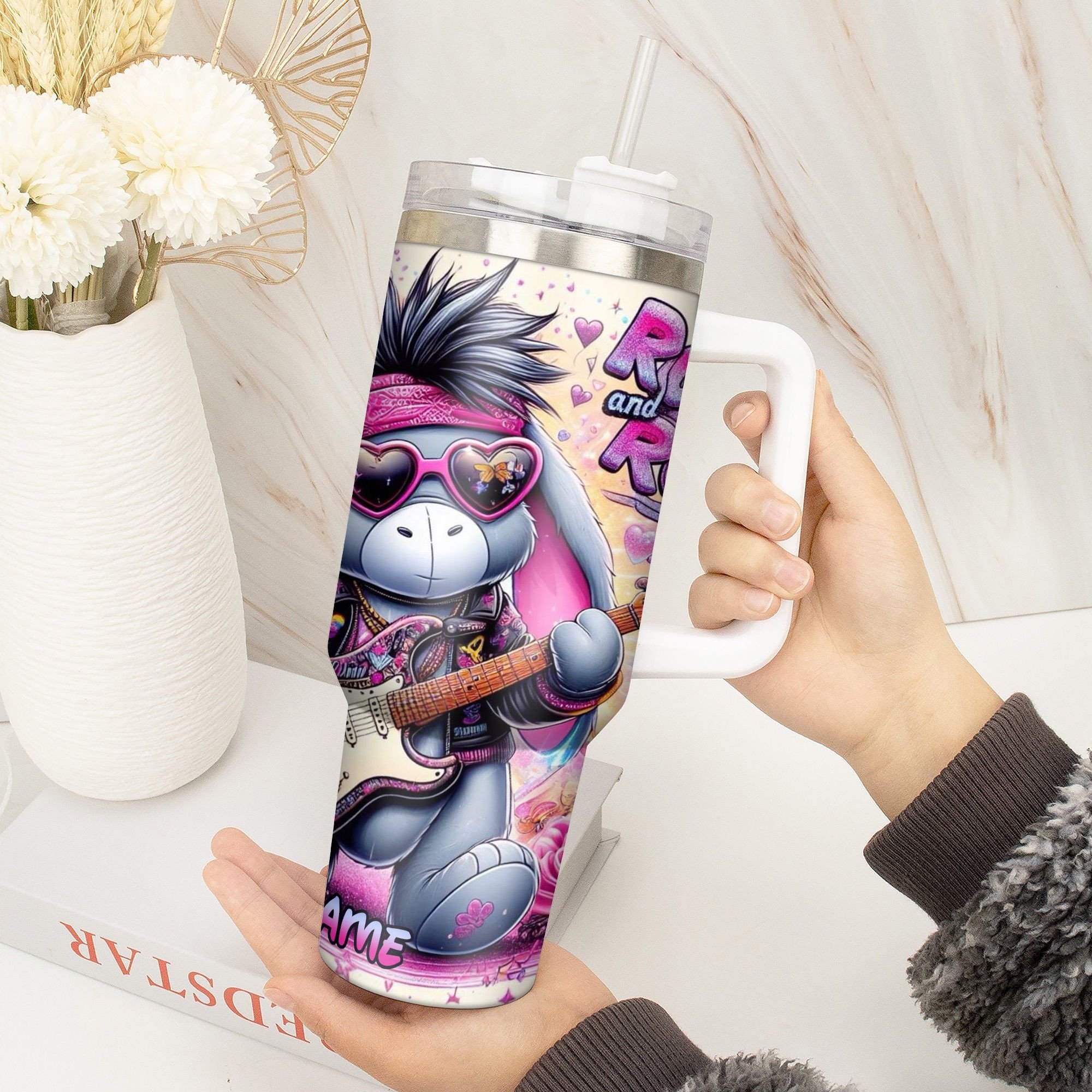 Rock on with this vibrant, customizable tumbler featuring a fun cartoon design. Perfect for music lovers, it keeps drinks hot or cold.