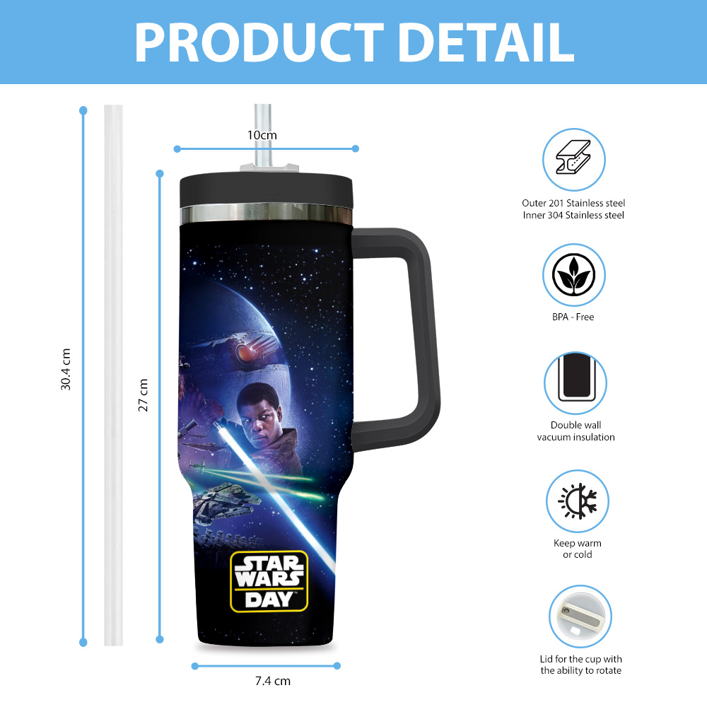 Stay refreshed with this customizable Star Wars tumbler featuring iconic scenes. Perfect for fans, add your name for a unique touch.