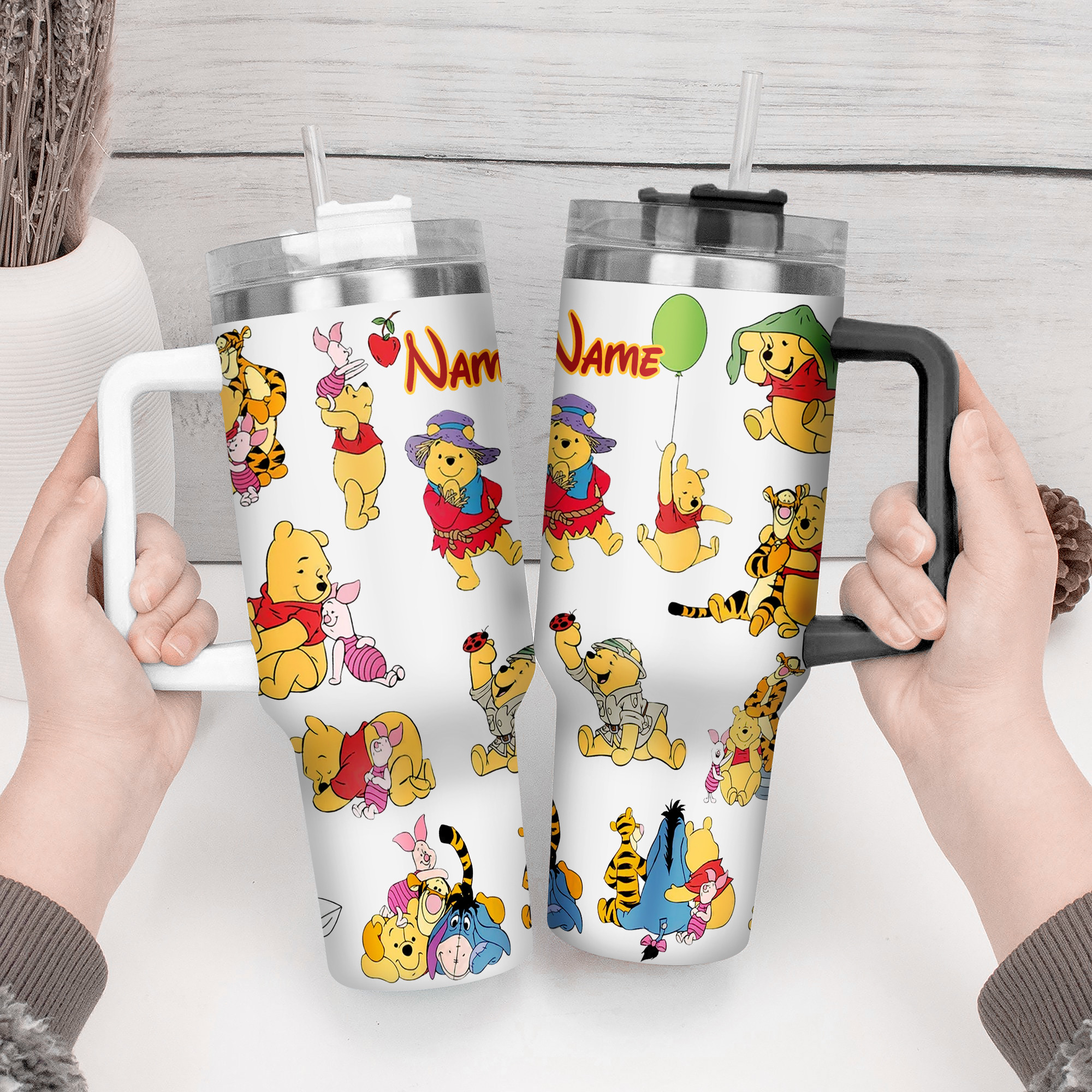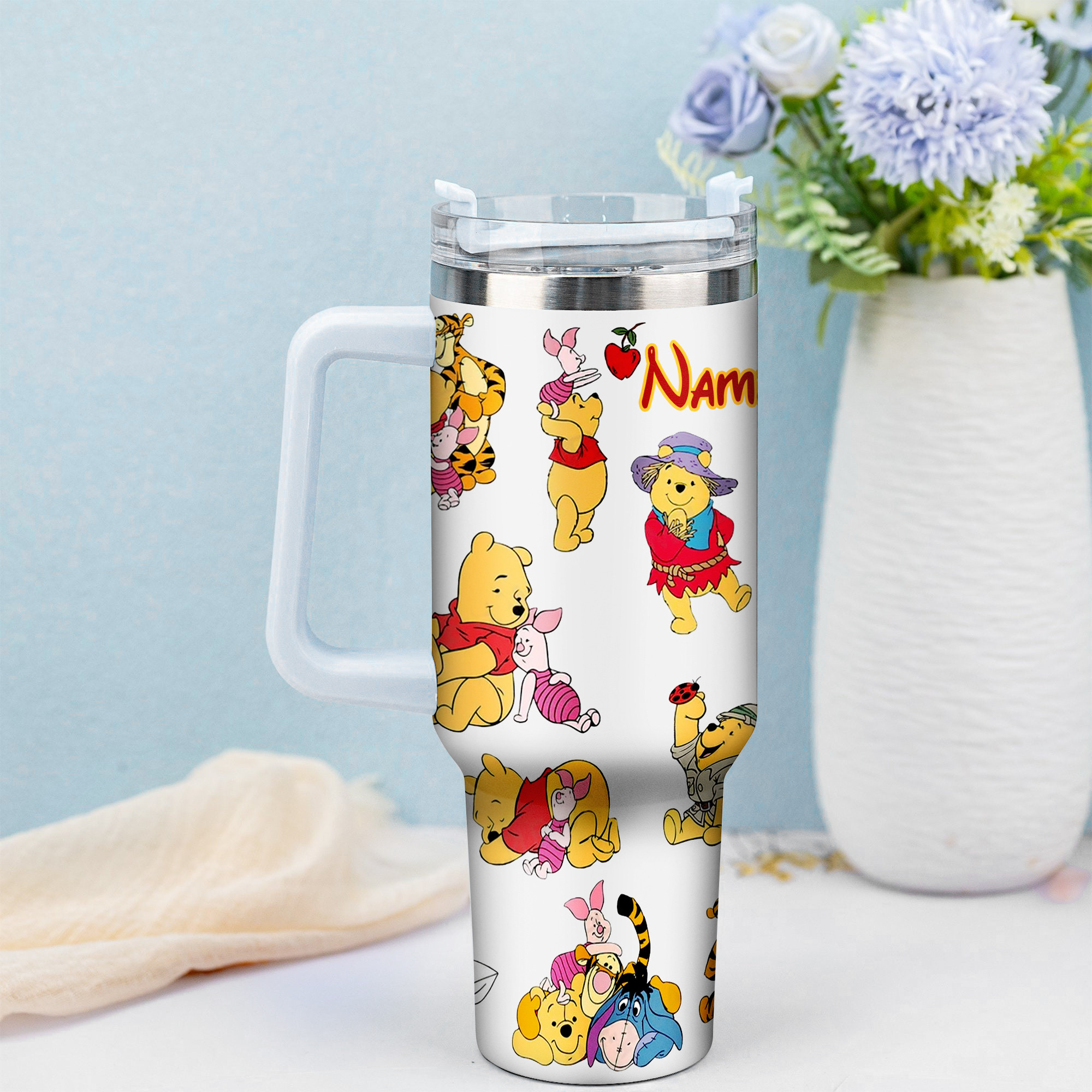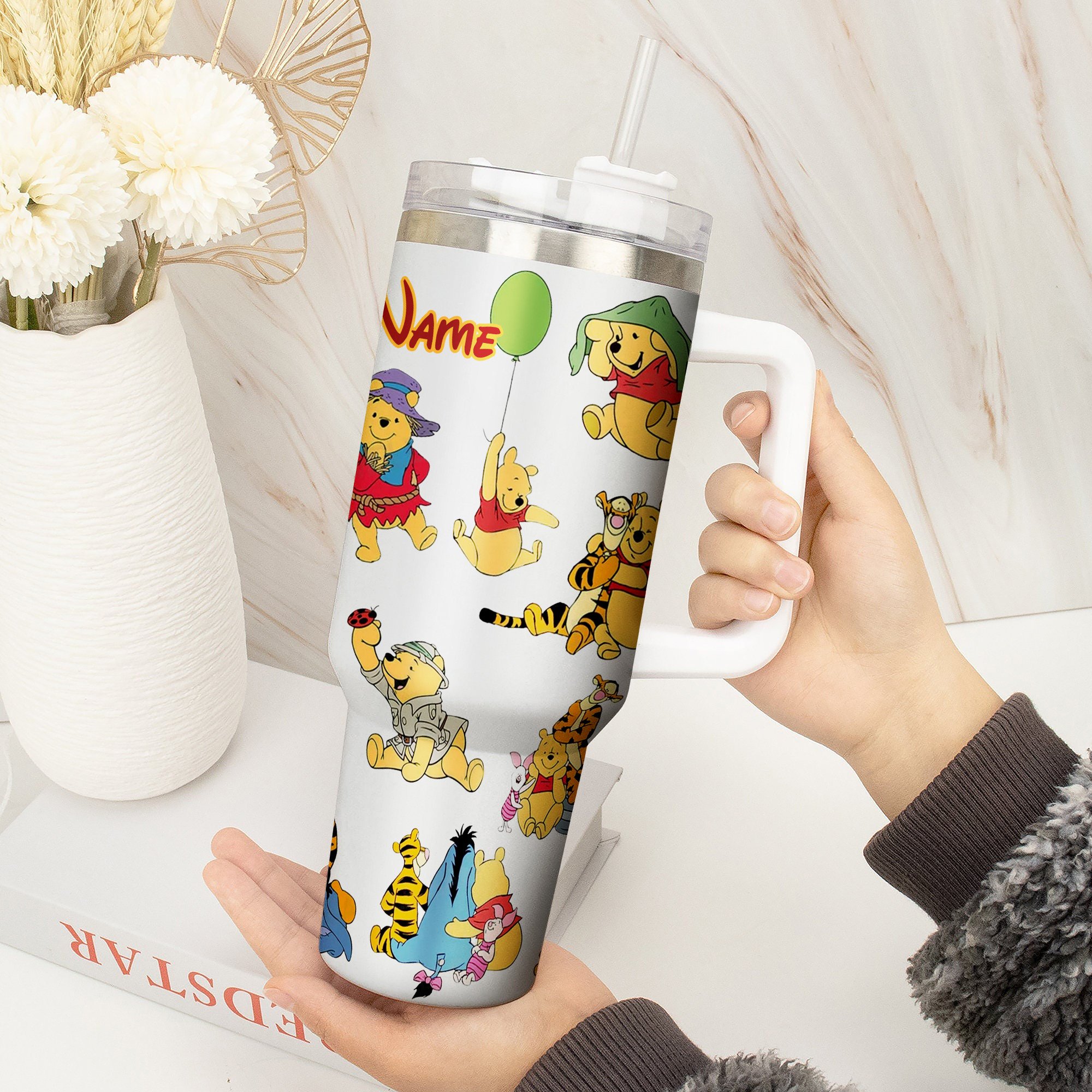 Enjoy your favorite drinks with this adorable personalized Winnie the Pooh tumbler. Perfect for on-the-go, featuring a fun cartoon design.
