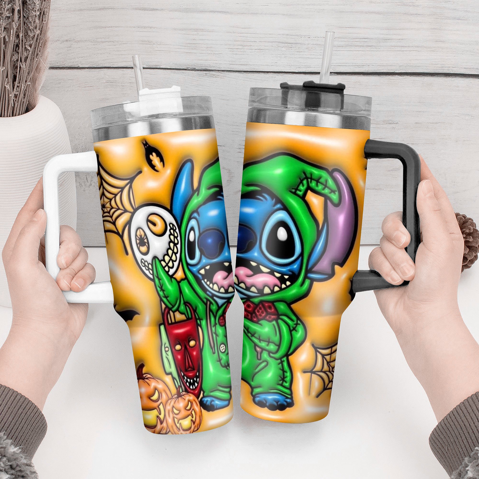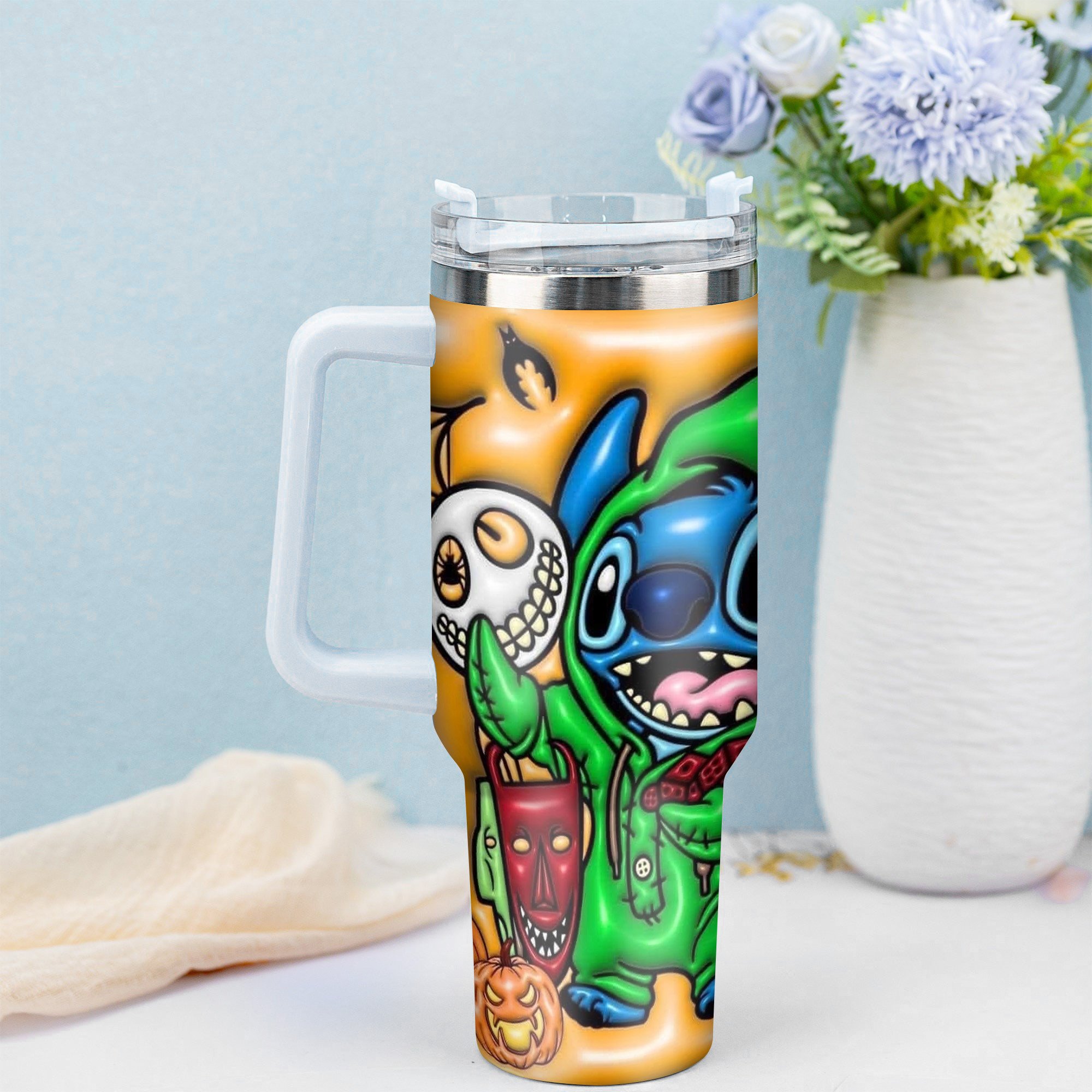 Enjoy your favorite beverages in style with this vibrant Halloween-themed tumbler. Perfect for keeping drinks hot or cold while adding fun to your fall festivities.