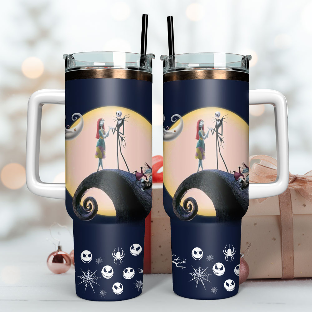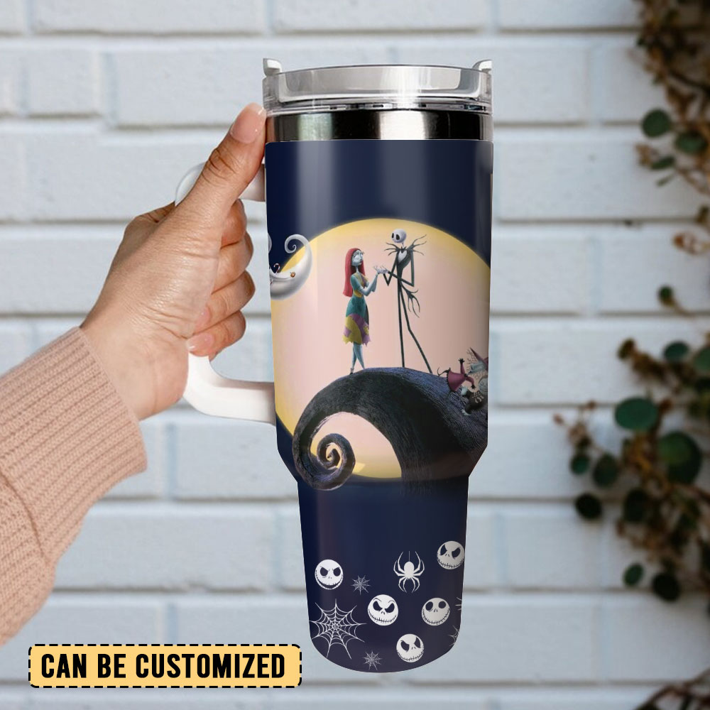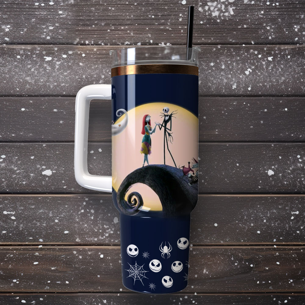 Enjoy your favorite drinks in style with this spooky night-themed tumbler. Features a sturdy handle and a fun design, great for Halloween or movie enthusiasts.