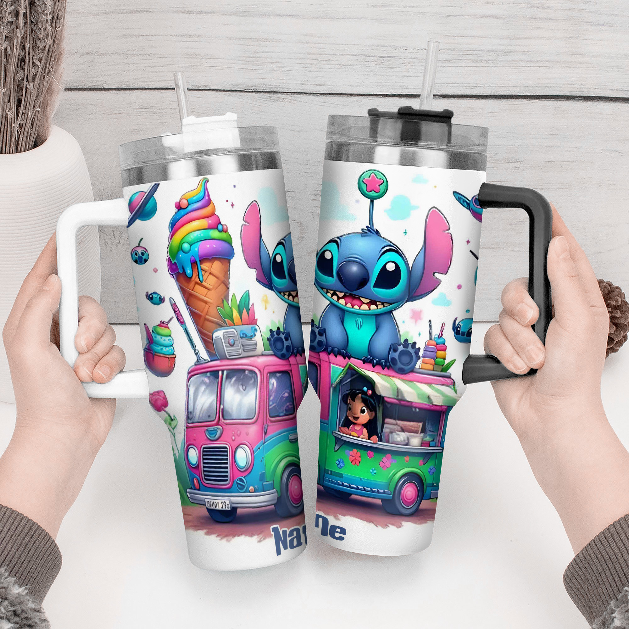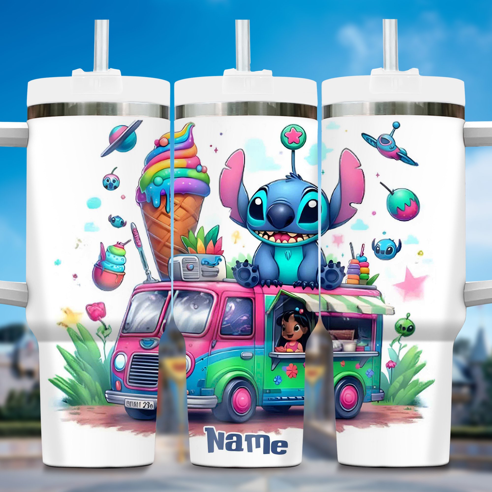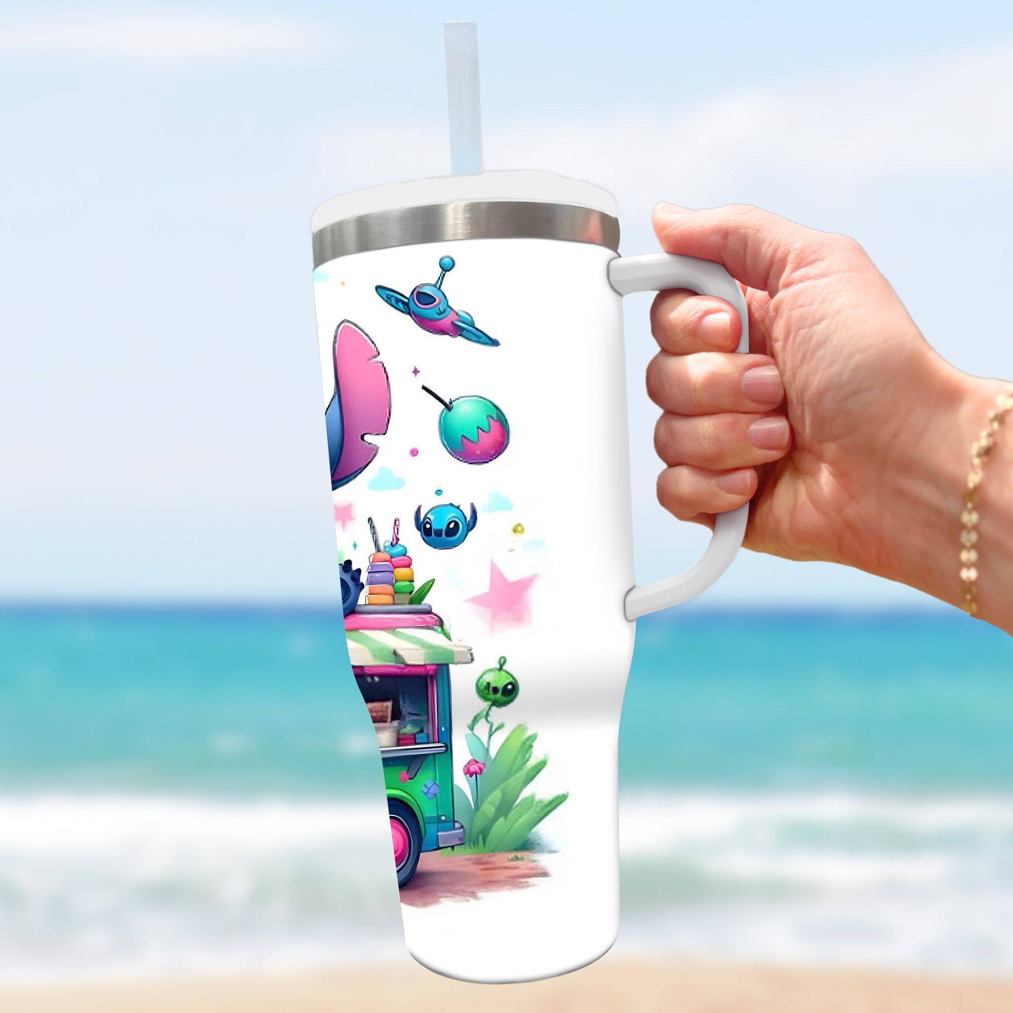 Enjoy your drinks in style with this playful tumbler featuring a colorful ice cream truck and alien theme. Perfect for on-the-go fun!