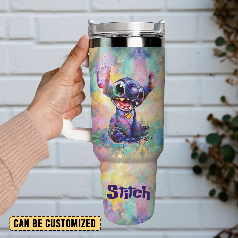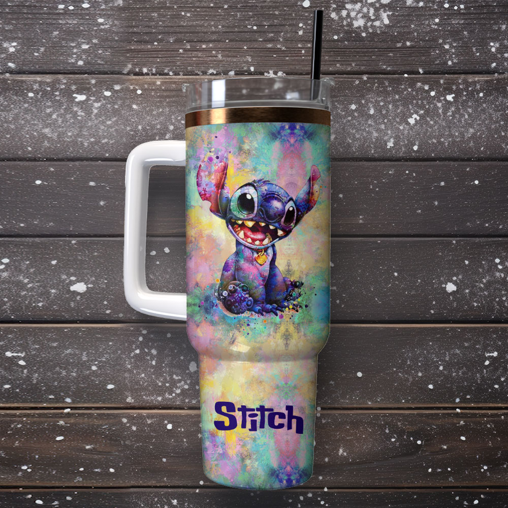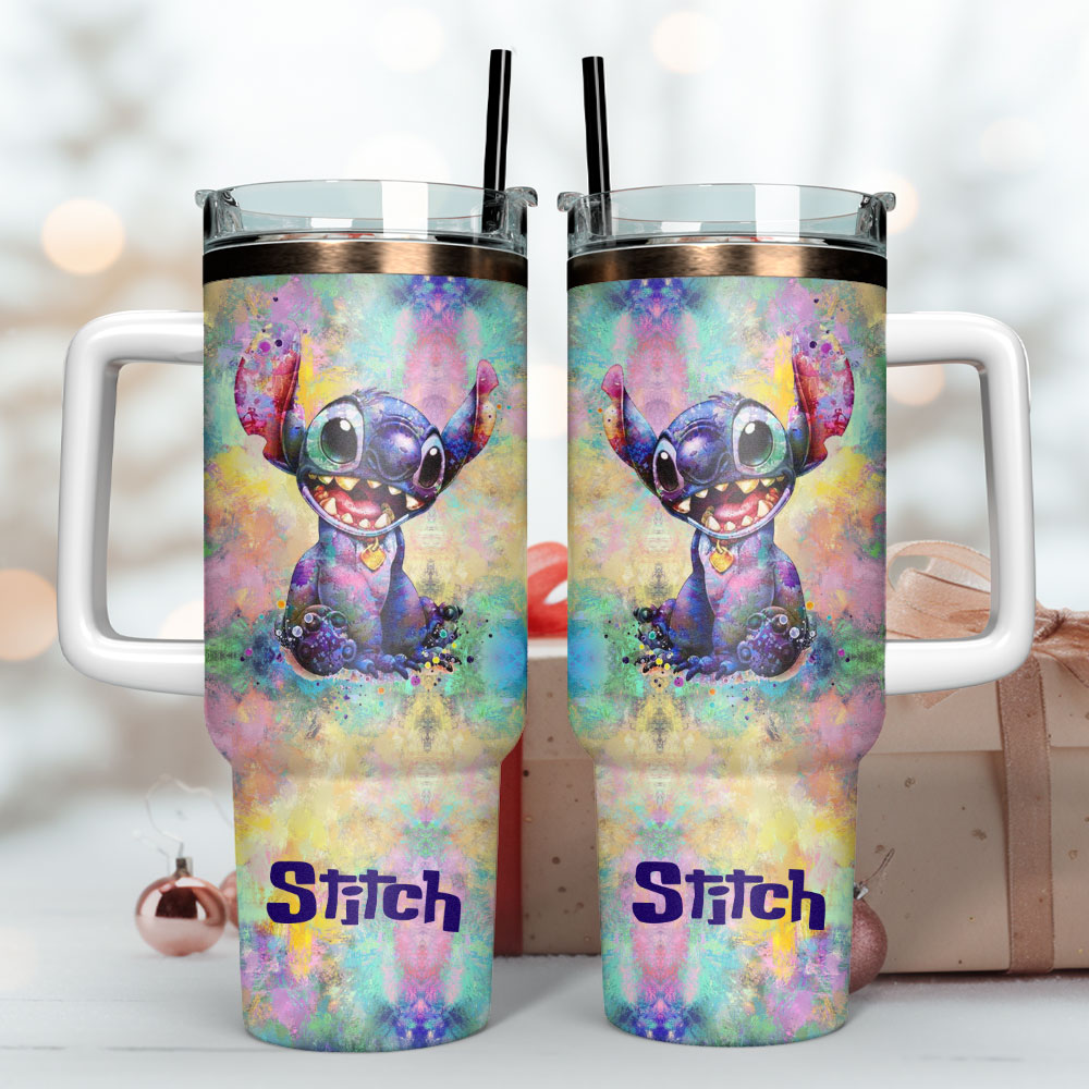 Stay refreshed with this colorful Stitch tumbler. Its convenient handle and straw make it ideal for travel or daily use. Embrace the fun design!