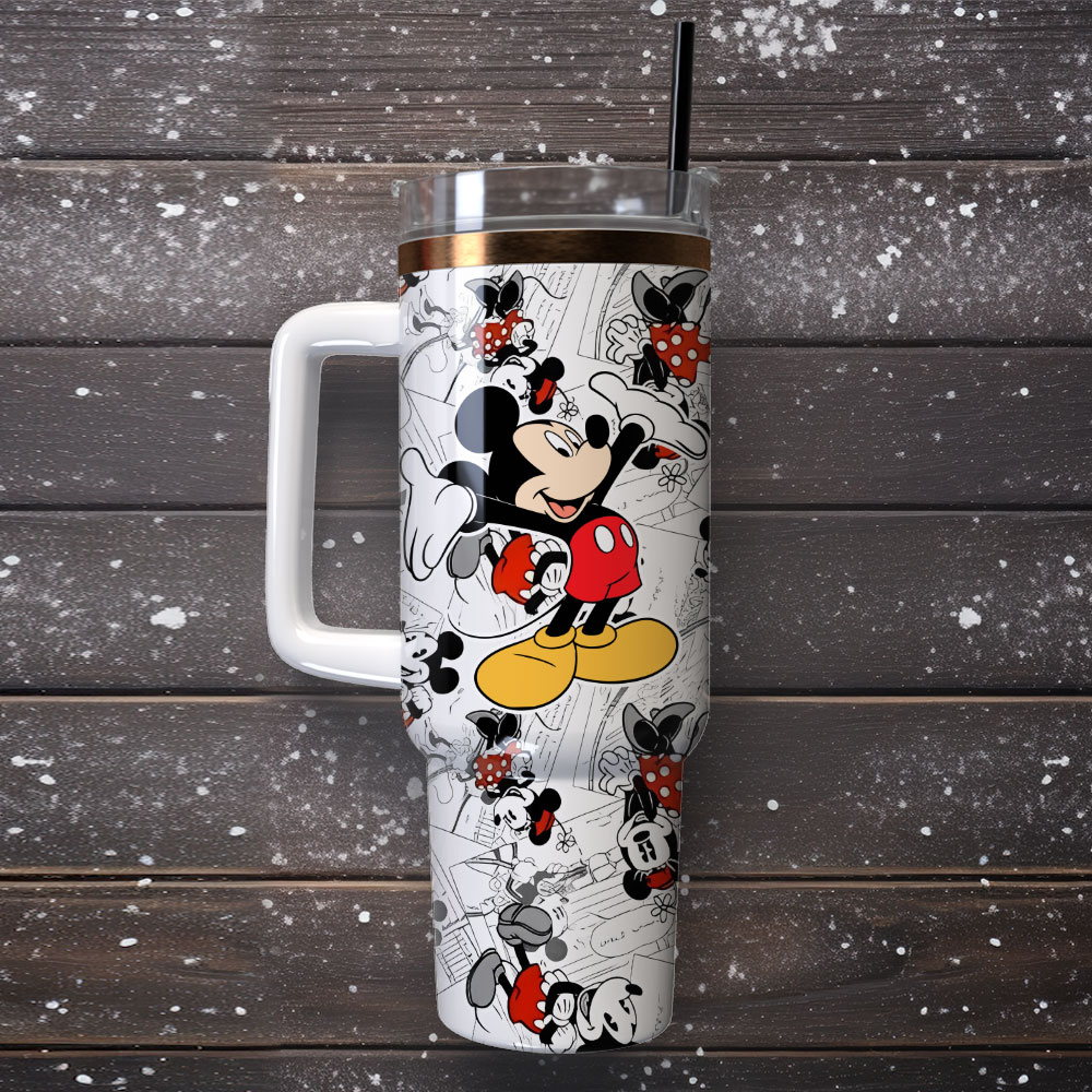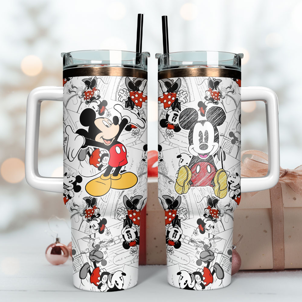 Stay refreshed in style with this charming 20oz Mickey & Minnie Mouse tumbler. Perfect for travel, it keeps your drinks hot or cold and is easy to carry.